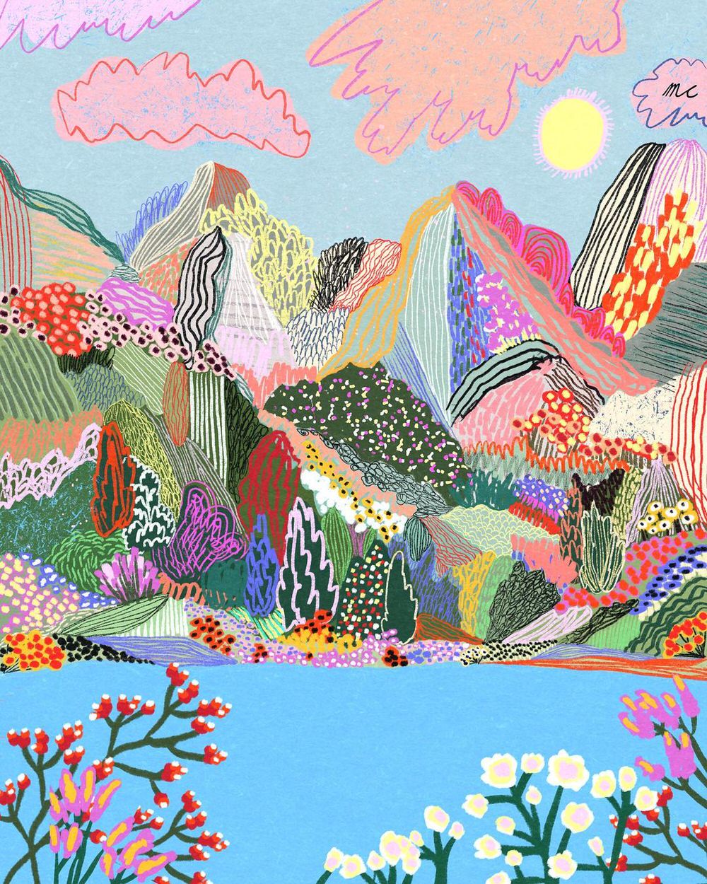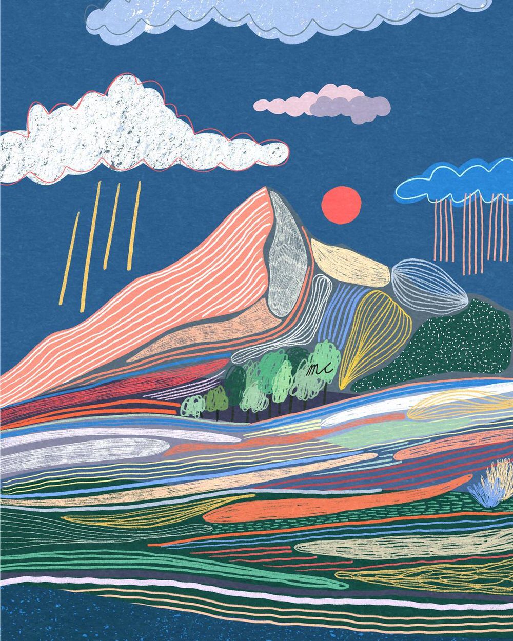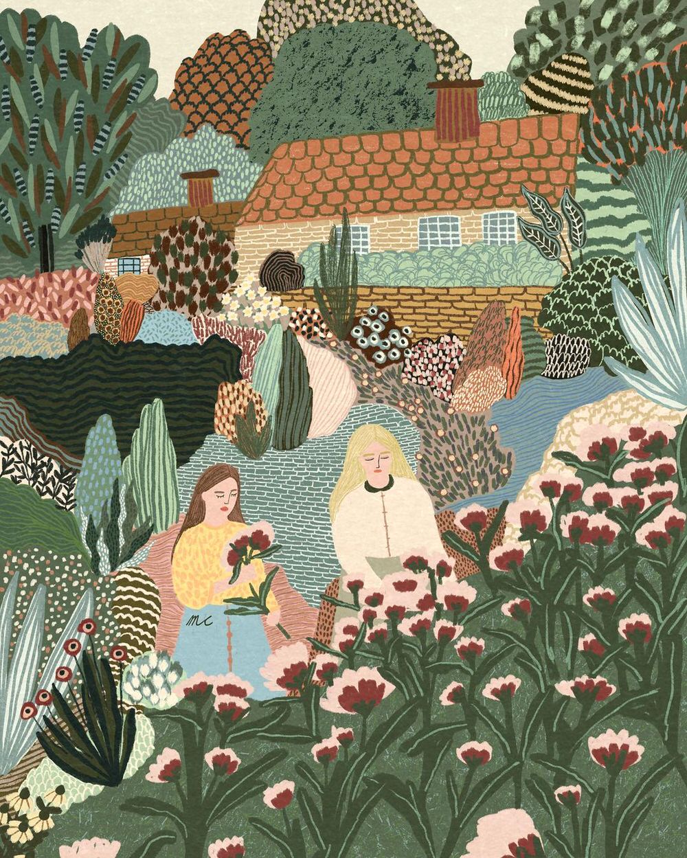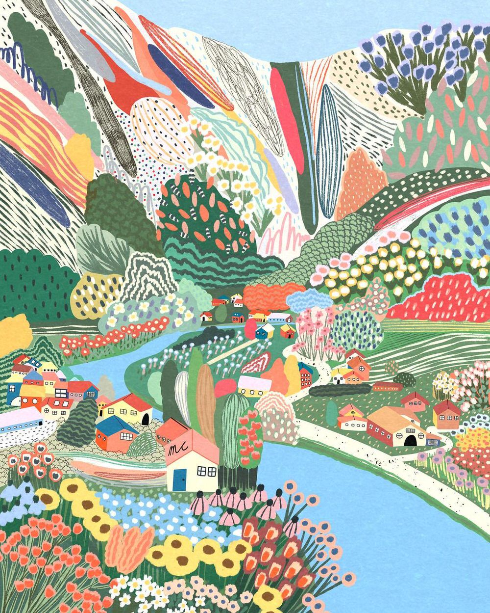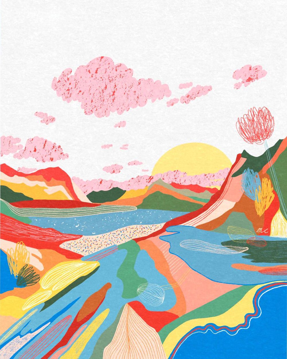 Anche quando si scorgono case, figure umane o automobili, il fulcro delle illustrazioni digitali di Marina Ester Castaldo, illustratrice e designer napoletana residente a Londra, è sempre il paesaggio naturale: avvolgente, rigoglioso, saturo di colori e profumi che quasi riusciamo a percepire.
