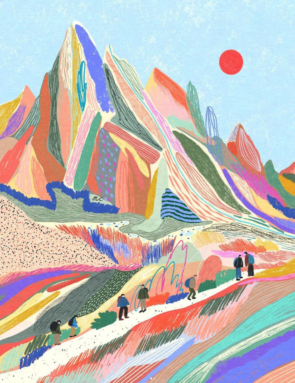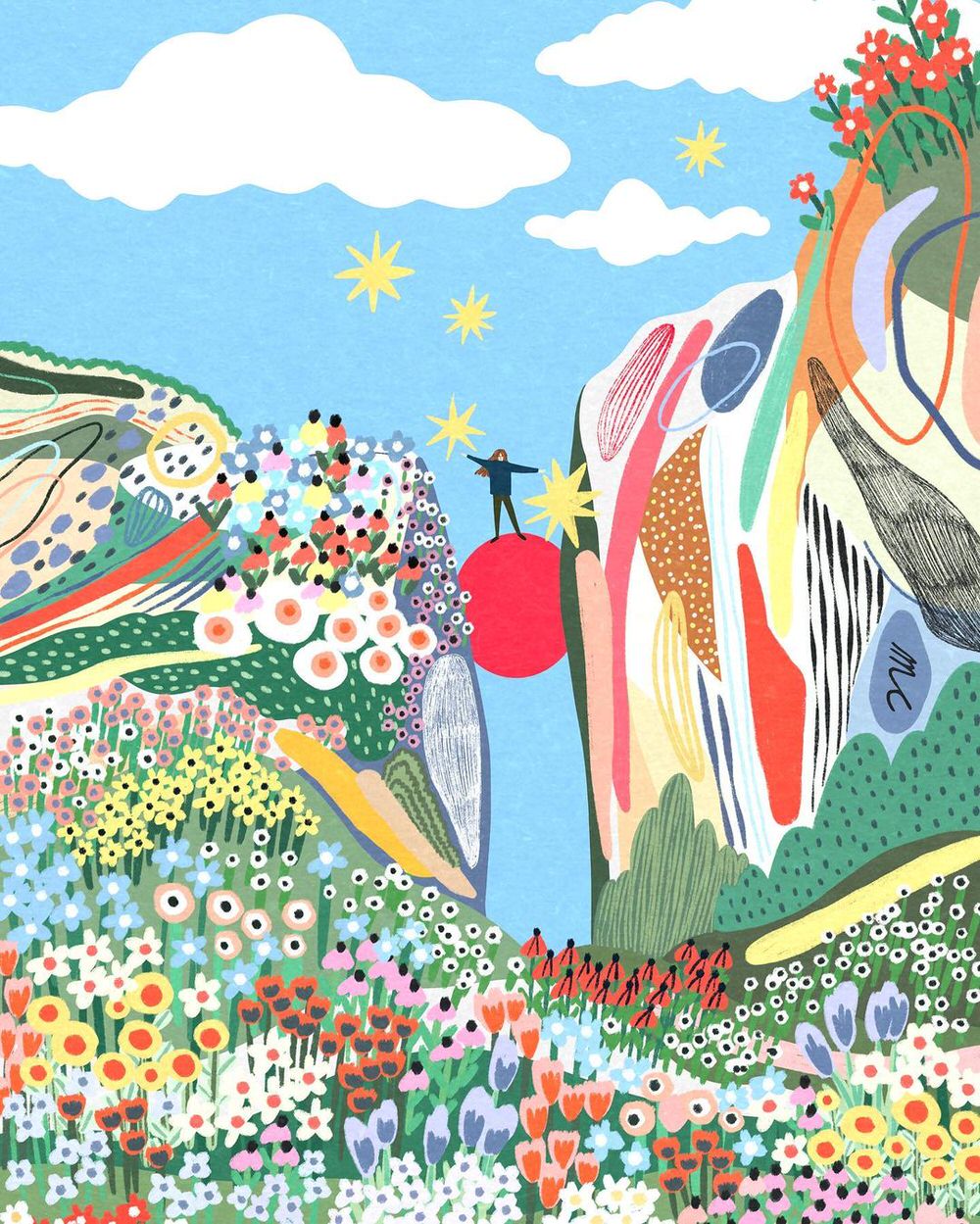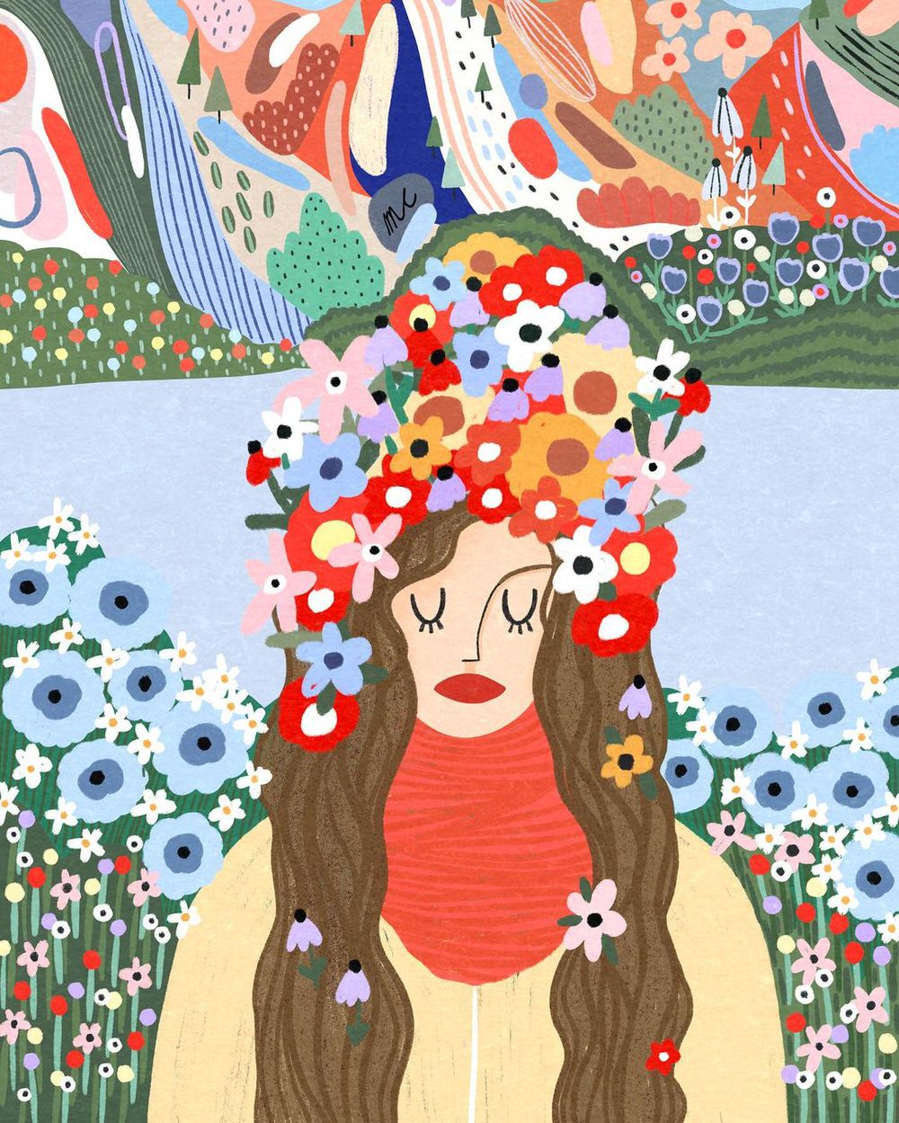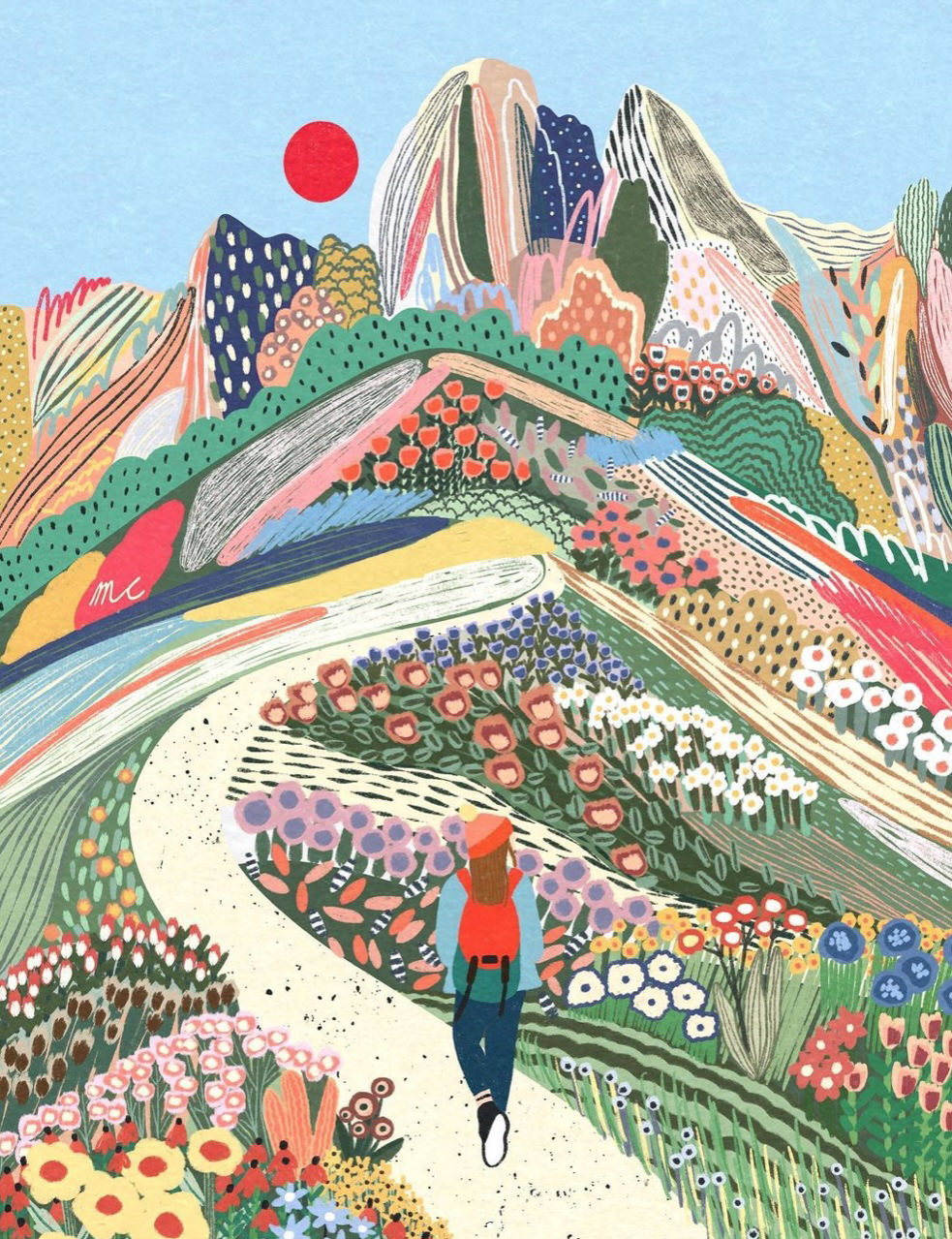 Anche quando si scorgono case, figure umane o automobili, il fulcro delle illustrazioni digitali di Marina Ester Castaldo, illustratrice e designer napoletana residente a Londra, è sempre il paesaggio naturale: avvolgente, rigoglioso, saturo di colori e profumi che quasi riusciamo a percepire.