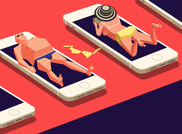 Dietro ad ogni illustrazione ci sono scene di vita vissuta, di quotidianità, situazioni che ognuno di noi si trova di fronte camminando per la strada, lavorando, viaggiando. Non c’è negatività, ma un’avvolgente sensazione di calore data da palette di colori sapientemente abbinati, piatti ma profondi.