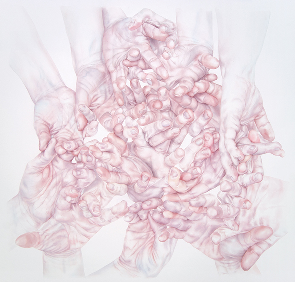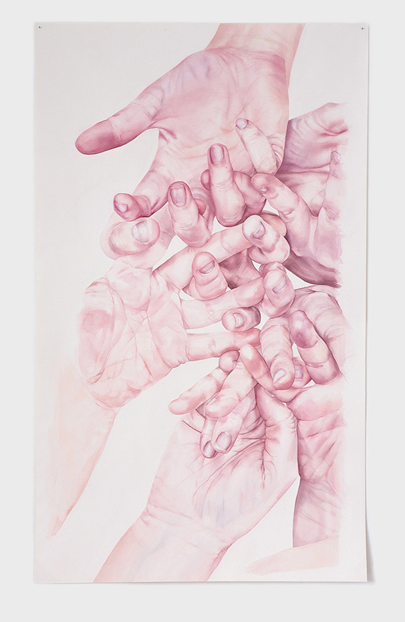 Martha Ossowska Persson, svedese classe 1983, ha provato a coglierne le infinite sfaccettature con una vibrante interpretazione di fisicità tattili in un’epoca sempre più tecnologica e disumanizzata. Il tema predominante della collezione riguarda l’esplorazione multiforme del corpo e dei comportamenti umani innati; davvero notevole il sapiente utilizzo degli acquerelli, tecnica grazie alla quale l’artista ha saputo rendere le sue opere realistiche e molto dettagliate, costituendo il punto d’incontro tra lo spettatore ed il concetto espresso.