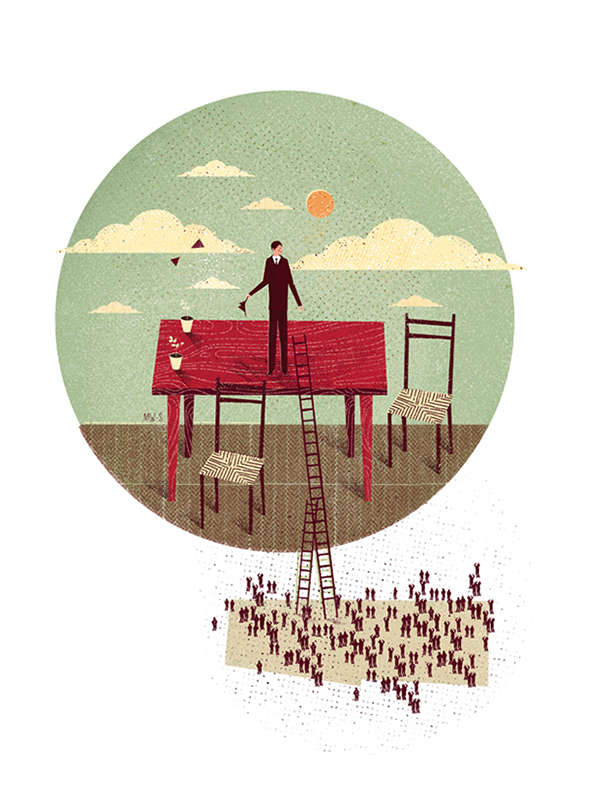 Equilibrio. È ciò che traspare da ognuna delle illustrazioni della polacca Martyna Wójcik-Śmierska. Equilibrio delle forme, in cui geometria e disegno dialogano senza attriti; equilibrio dei colori, con texture leggere e tinte piatte sapientemente mescolate; equilibrio della narrazione, in cui l’approccio spiccatamente concettuale è pur sempre diretto e di immediata interpretazione. Tutto il resto che c’è da sapere lo dicono le immagini.