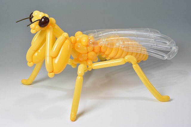 I suoi soggetti preferiti sono gli animali, con una predilezione per gli insetti. Il grado di dettaglio va dalla trasparenza delle ali di una mosca alle squame che ricoprono il corpo di un pesce, realizzate una ad una e magistralmente assemblate. La tecnica racchiude numerose insidie, a cominciare dalla delicatezza intrinseca del materiale di base, i palloncini appunto, che potrebbero scoppiare da un momento all’altro costringendo Masayoshi a ricominciare daccapo.
