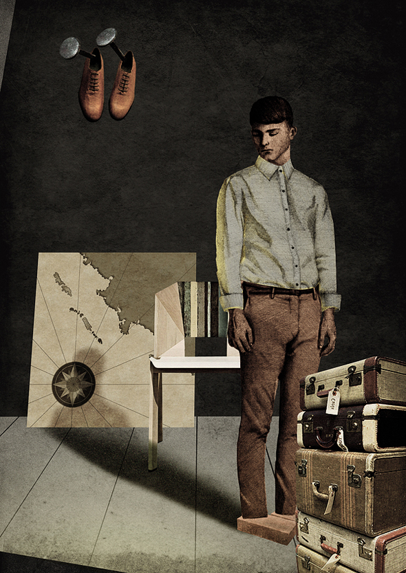 Massimiliano Grandoni ha 32 anni e vive ad Ancona. Professione graphic designer con una passione per l’illustrazione e il collage fotografico che lo ha portato nel corso degli anni a realizzare diverse tavole, successivamente raccolte e pubblicate sul suo sito. Di lui ci piacciono la ricercatezza delle immagini e le atmosfere cupe, impastate da un sapiente utilizzo di textures ed accostamenti cromatici. Siamo certi che non sarà l’ultima volta che ne sentiremo parlare.