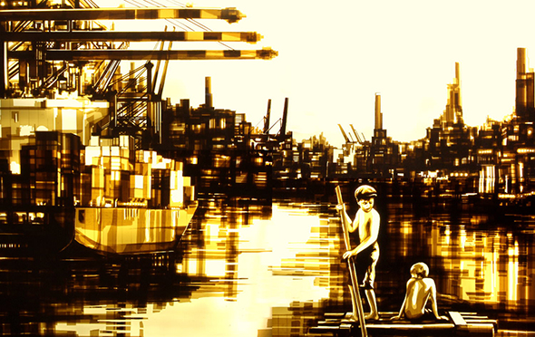 Max Zorn è un artista olandese autodidatta che ha iniziato la sua carriera di tape artist nel 2012, quando è salito su un lampione di Amsterdam per incollare un ritratto fatto col nastro da pacchi marrone, nello stesso modo in cui anni dopo ha realizzato questo intervento a Hong Kong. Spiega Max: