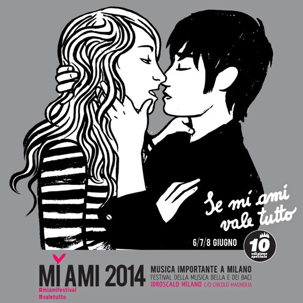 Dal 6 all’8 giugno all’Idroscalo di Milano, il Mi Ami festeggerà i 10 anni dalla prima edizione, il compleanno del “festival della musica e dei baci”, nato dall’idea di un piccolo gruppo di amici e diventato nel tempo uno degli eventi artistici più attesi. Nella sezione Mi Fai infatti si esibiranno live anche molti nomi del fumetto e dell’illustrazione italiana (tra cui molti amici di PICAME), da Davide Toffolo ad Alessandro Baronciani, autore del poster 2014 e del primo, dieci anni fa, da Jacopo Rosati a Virginia Mori a Roberto La Forgia e Roberta Zeta, per citarne solo alcuni. Qui potrete trovare il programma completo.