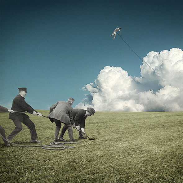 Miraruido vuol dire letteralmente “guardarumore” ed è il nome sotto cui si cela l’illustratore spagnolo Joseba Elorza. Con la tecnica del collage, Miraruido costruisce mondi fantascientifici accanto a scenari surreali in stile magrittiano. Animali e personaggi abnormi dominano paesaggi montani, ma diventano minuscoli, sospesi e spaventati di fronte alle catastrofi, all’infinità del cosmo e all’incombere di ufo alieni. Fascino retrò misto ad una grottesca fantascienza, decorata da elementi geometrici. Guardate i suoni che fanno.