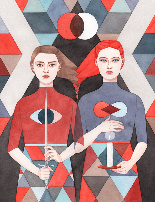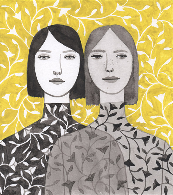 Nativa di San Francisco, Monica Garwood vive e lavora nel luogo perfetto per captare molte delle tendenze che animano la nostra società, quel crocevia di idee e talenti che è la Bay Area. Le sue figure femminili sono fatte di pochi tocchi, eppure somigliano alle nostre amiche, sorelle, conoscenti. Osservano silenziose, talvolta sorridono enigmatiche, ed incarnano l’essenza della femminilità. Stilisticamente, sono il frutto di una riuscita sintesi tra spirito rétro ed contemporaneità: mescolano elementi liberty ed una certa propensione alle geometrie con un sentire attuale che trasmette passione e forza, riflessione e saggezza.