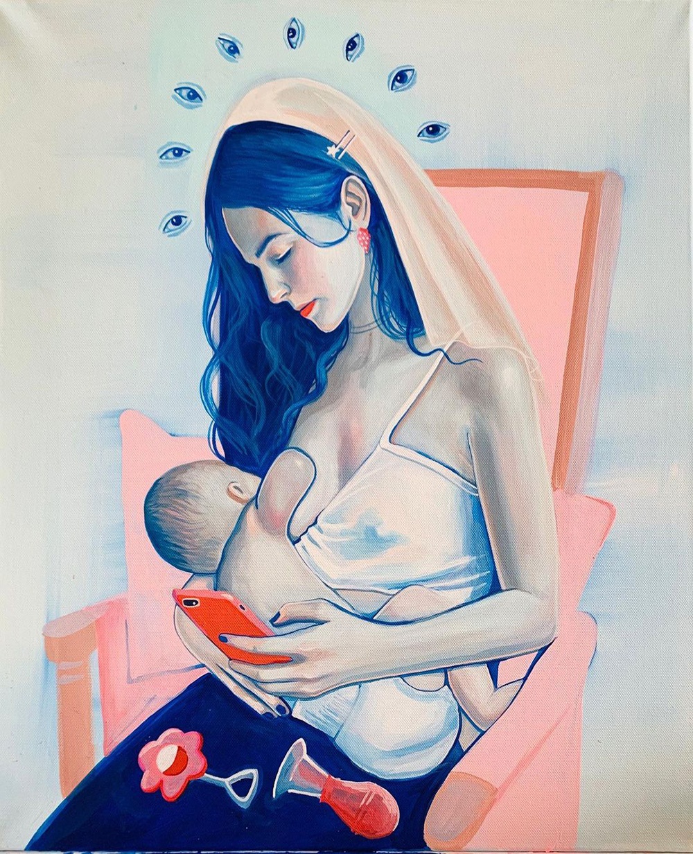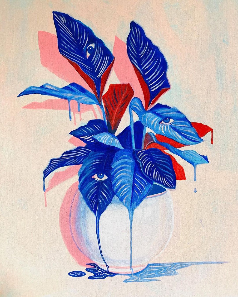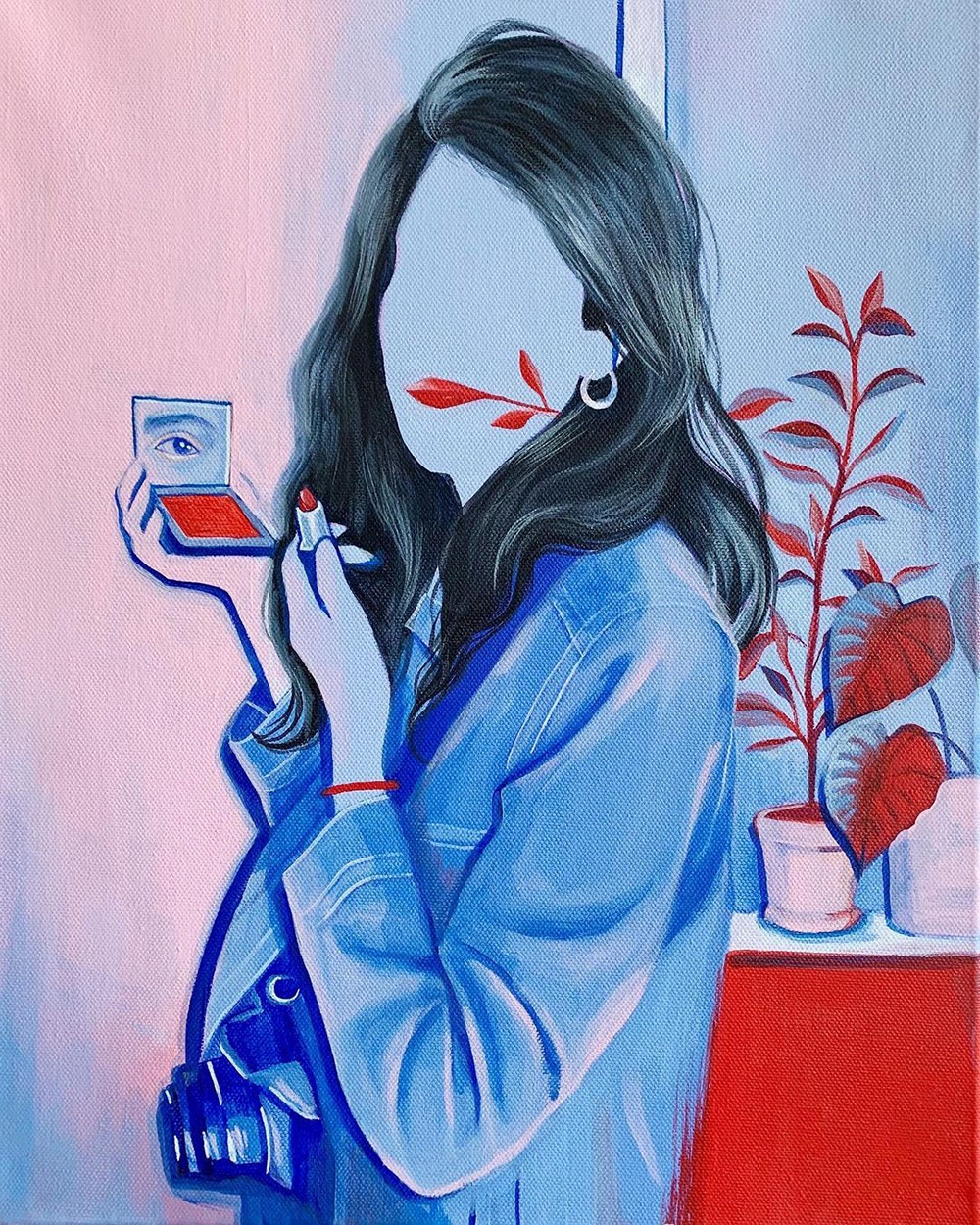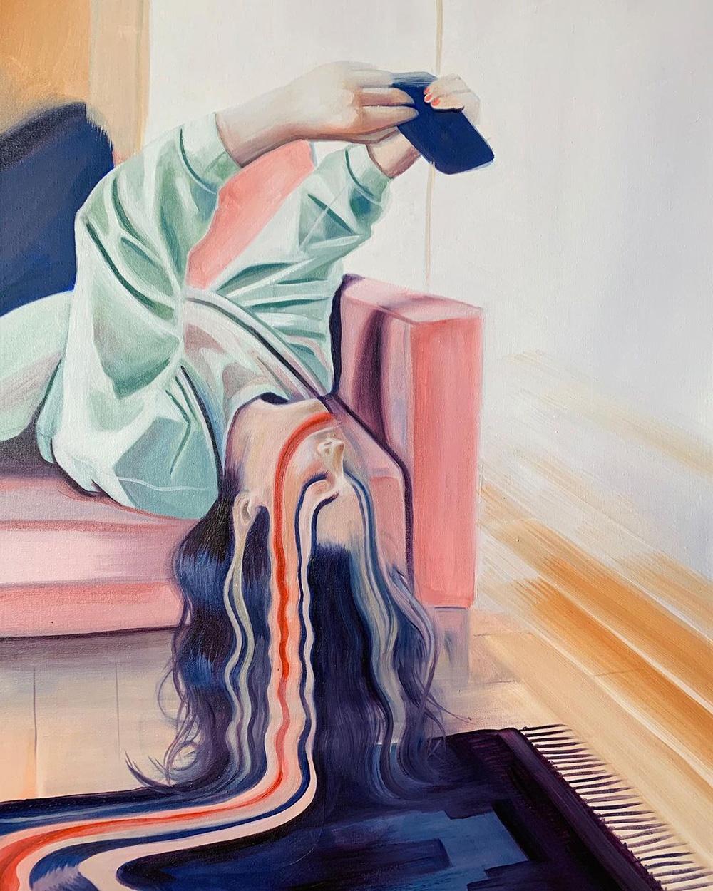Monica Loya ne è un esempio calzante. Le sue illustrazioni indagano le sensazioni più intime della mente umana e si collocano sulla sottile linea che divide il mondo fisico da quello psichico, spesso rompendo questo confine e lasciando che i due mondi si invadano l’un l’altro fino a diventare indistinguibili. Gli oggetti e i volti ad un certo punto si dissolvono, i connotati si mescolano, lo spazio si piega fino a distorcere la realtà. Ogni opera è una metafora in cui possiamo specchiarci e a cui possiamo attribuire arbitrariamente un significato perchè in essa riconosciamo un nostro stato d’animo. Così facendo l’opera stessa diviene al contempo consapevolezza e cura.