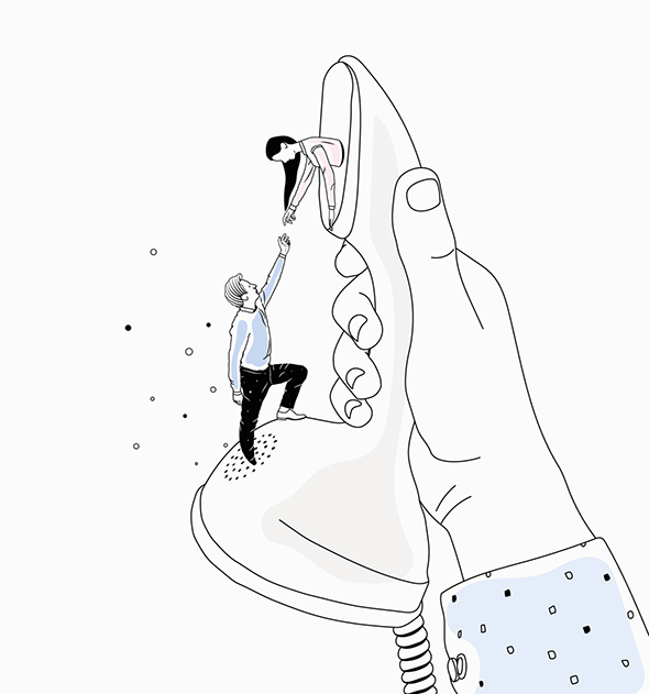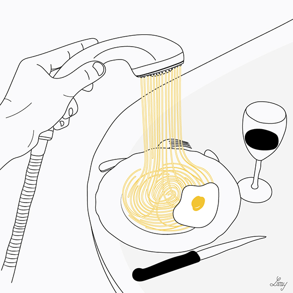 A quanto mi è dato di capire dalle elusive tracce biografiche di Yves-Antoine Lamy, che sul proprio sito si definisce laconicamente “illustratore”, la sua carriera è ancora all’inizio. Definito da un bianco e nero minimale ravvivato di tanto in tanto da un unico tocco di colore, scarno quasi al pari della bio nel suo profilo, il suo stile si basa su surreali accostamenti di idee, divertenti e vagamente strampalate, rese con essenziale ed elegante semplicità. Un portfolio da tenere d’occhio.