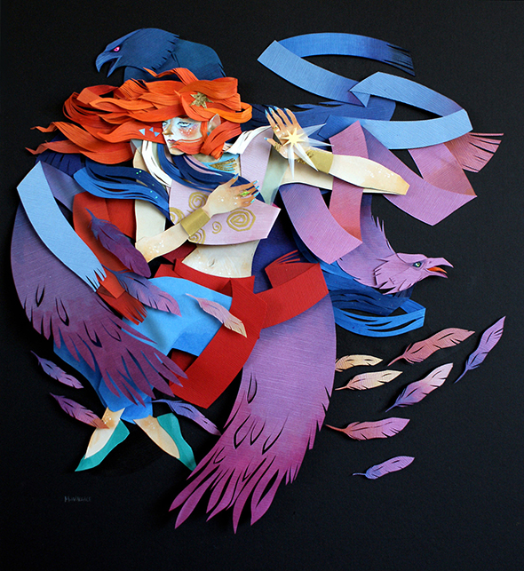 L’arte di Morgana Wallace è un tributo alla storia, alla cultura ed alla mitologia orientale condito con una tecnica sopraffina di composizione. Il suo materiale-icona è la carta, con la quale riesce a conferire alle proprie opere una tridimensionalità ed una dinamicità fuori dal comune. Un mondo mistico nel quale vi consiglio di immergervi, per qualche istante.