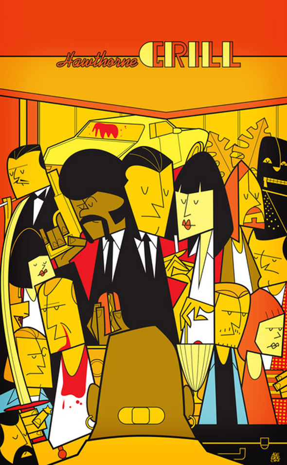 Kill Bill, The Blues Brothers, Pulp Fiction, The Big Lebowski, The Rocky Horror Picture Show… Avete indovinato di cosa sto parlando? Certamente, sono tutti i titoli di film celebri, scelti dall’artista italiano Ale Giorgini per realizzare la serie di illustrazioni stile cartoon-retro-geometric che vi mostriamo.