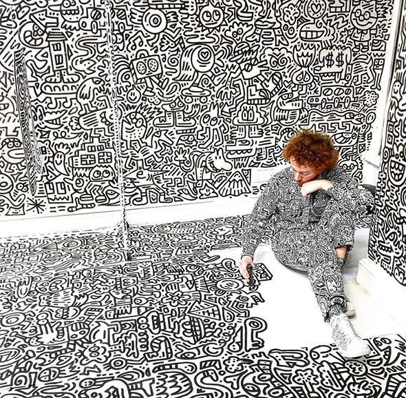 Se un giorno dovesse capitarvi di incrociare per strada Mr. Doodle state molto attenti, potrebbe avvicinarsi di soppiatto e scarabocchiarvi dalla testa ai piedi! Per fortuna non è difficile da identificare: ha una testa di riccioli rossi e indossa sempre strani indumenti bianchi con disegni fittissimi. Gli stessi con cui si diverte a ricoprire qualsiasi superficie, dalle pareti agli oggetti.