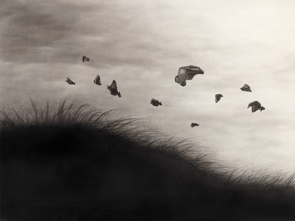 “Bees“, serie di disegni a carboncino e pastello su carta sull’importanza delle ruolo delle api nell’equilibrio ambientale