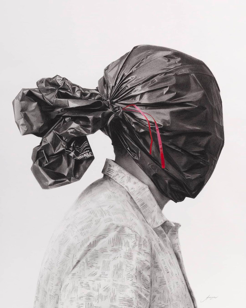Anthropologic è il titolo della loro ultima esposizione che si sta concludendo in questi giorni a Los Angeles nonchè del loro nuovo progetto. Abbondano i ritratti la cui testa è avvolta da un sacco per la spazzatura. Anche qui vale la doppia lettura: la nostra visione del mondo è oscurata dalle priorità economiche oppure il sistema di spreco è destinato a sostituire anche le nostre vite e le nostre identità.