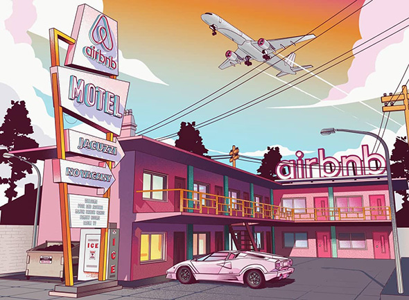 Il sapore retrò di queste illustrazioni viene amplificato da un un tratto realistico (realizzato interamente in digitale) associato a una palette di colori accesi e tinte fluo, come nella migliore tradizione grafica anni ’90. Buon viaggio.