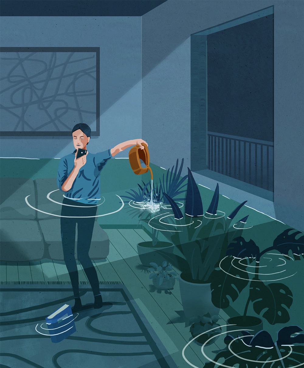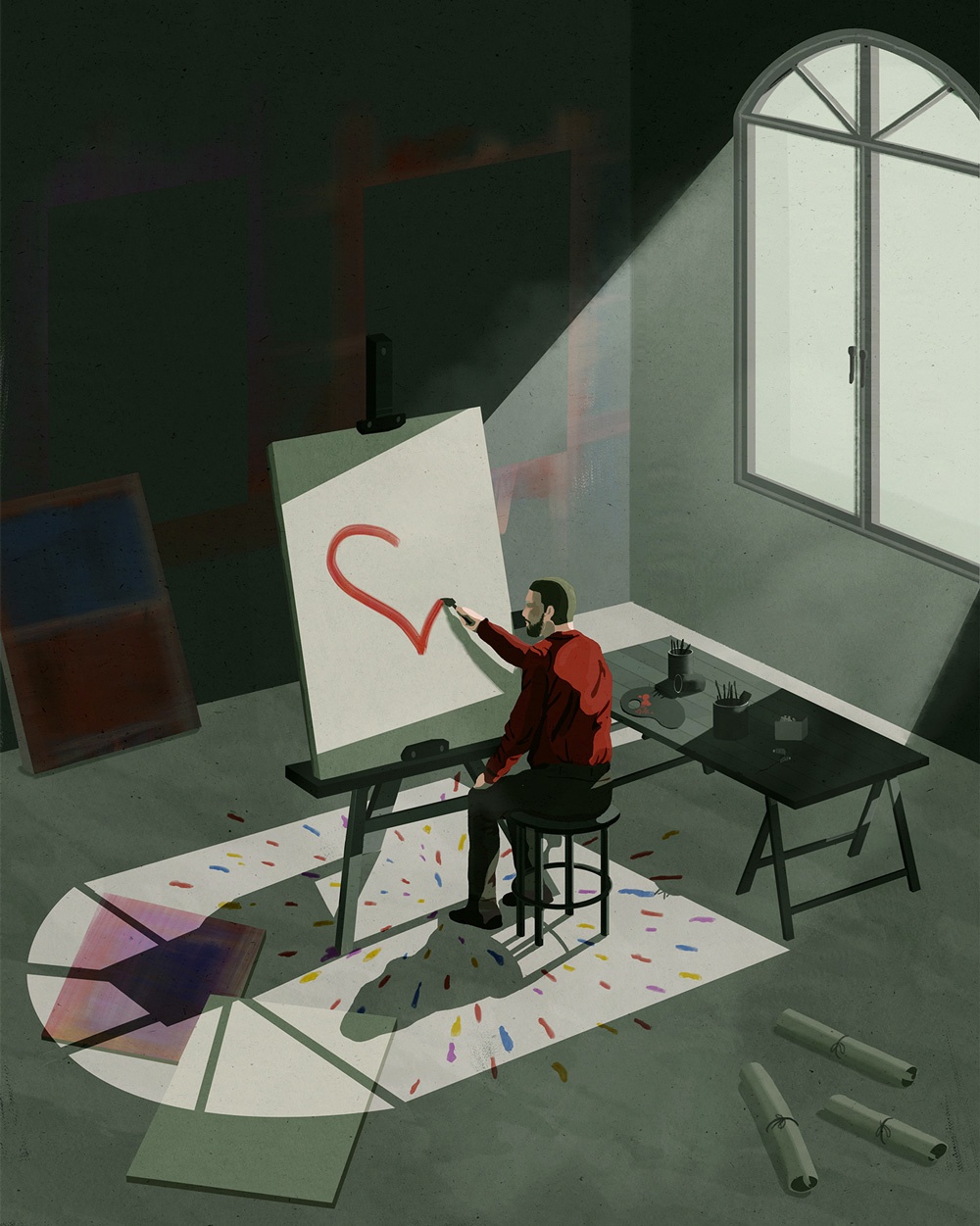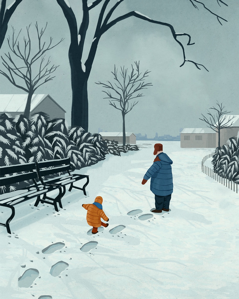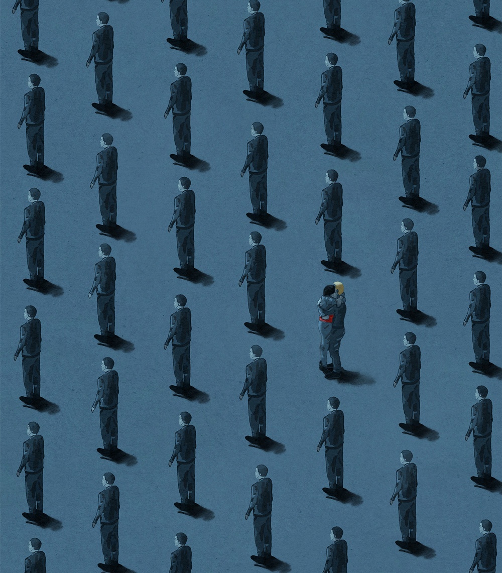 Il suo sguardo mette in risalto piccoli dettagli o aspetti apparentemente marginali che diventano epifanie rivelatrici. Anche quando si tratta di tematiche sensibili o divisive, i suoi lavori non danno mai un giudizio ma lasciano al pubblico il compito di trovare la propria risposta. Banco di prova è stato il primo lockdown, che l’ha spinto a realizzare una serie di illustrazioni nelle quali ha messo in evidenza la varietà delle reazioni all’isolamento.