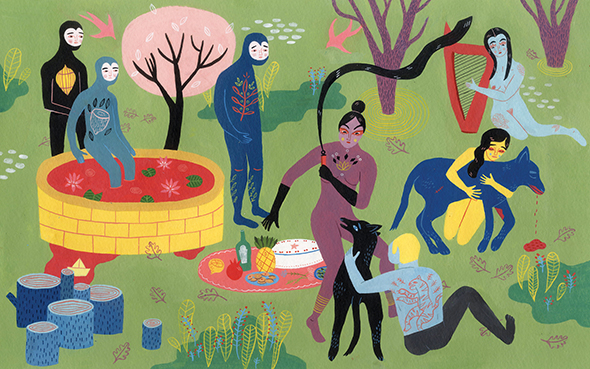 One of our gorgeous headers comes from the hand of Noa Snir, a young Israeli artist. Recently graduated with the project Arabian Nights (a series of oriental inspired paintings), his artworks are characterized by over saturated colors palette and profusion of details.
