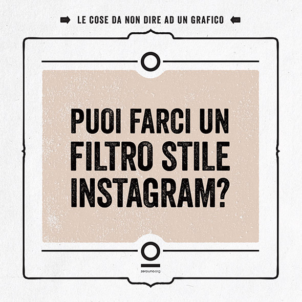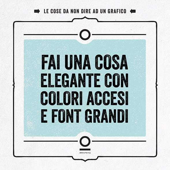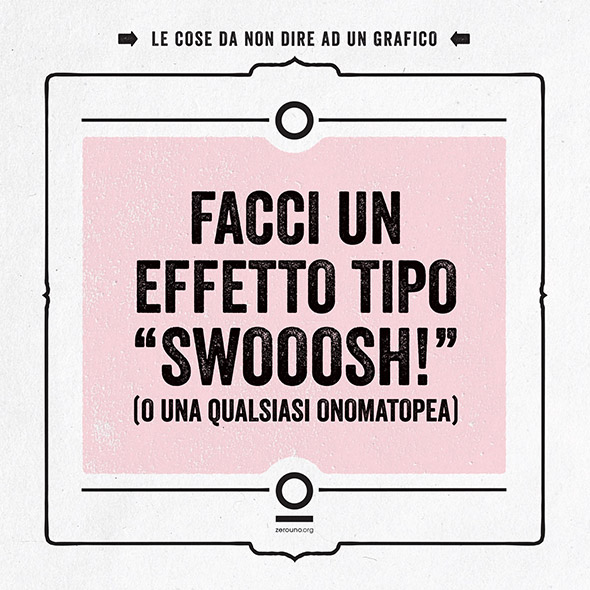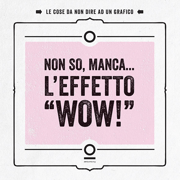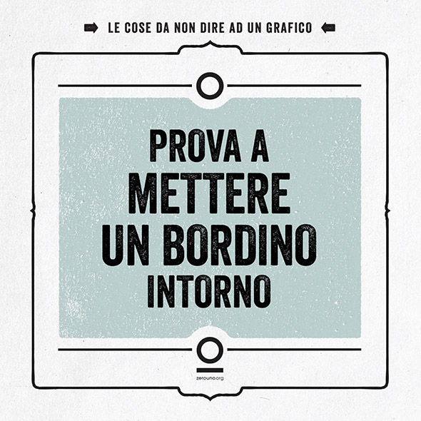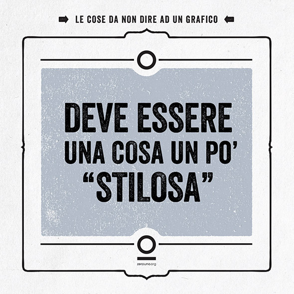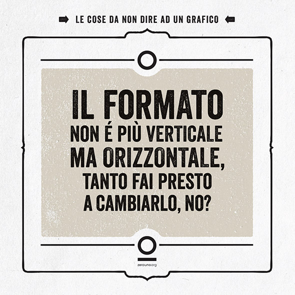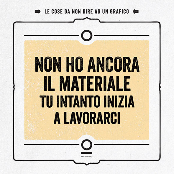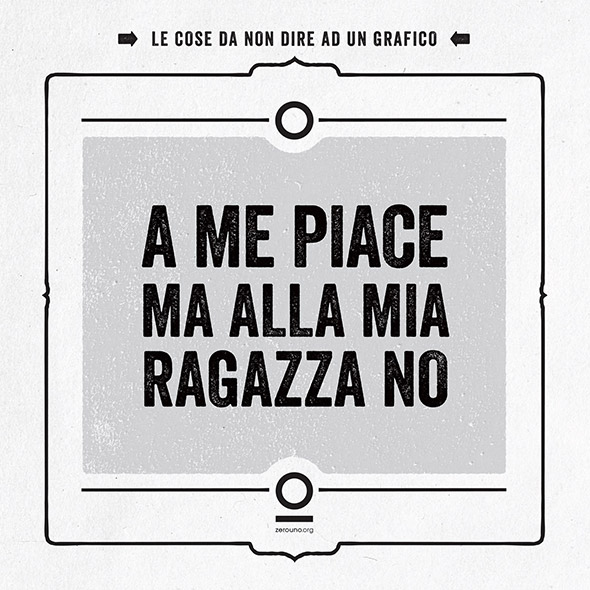 Cinque anni fa il graphic designer Luca Masini aka Zerouno decise di creare un serie che raccogliesse tutte le frasi peggiori che i grafici si sentono ripetere quotidianamente dai loro clienti. “Le 10 frasi da non dire mai a un graphic designer” in pochi giorni diventarono virali e ci spinsero ad iniziare una collaborazione con Luca creando le serie successive: “Non dirlo al Fotografo” e “Non dirlo al Designer”. Il successo di queste raccolte ha dimostrato che di creativi “frustrati” ce ne sono tanti, in tutti i settori. E che i clienti, non tutti ma parecchi, a volte riescono ad essere davvero odiosi. Bisogna però ammettere che molti di loro, i più illuminati e autoironici, si sono divertiti a leggerle, rivedendosi in alcune di esse.