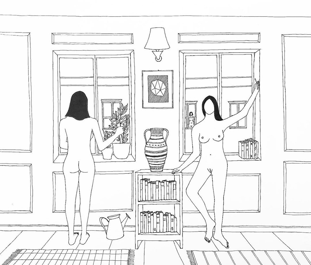 Le figure femminili sono uno dei temi più ricorrenti in ogni forma di rappresentazione artistica, sono caratterizzate da armonia e sinuosità, elementi che catturano immediatamente lo sguardo. Dopo aver disegnato le prime architetture, e averle riempite di oggetti, mi è venuto spontaneo popolarle di donne che godono appieno del loro tempo.