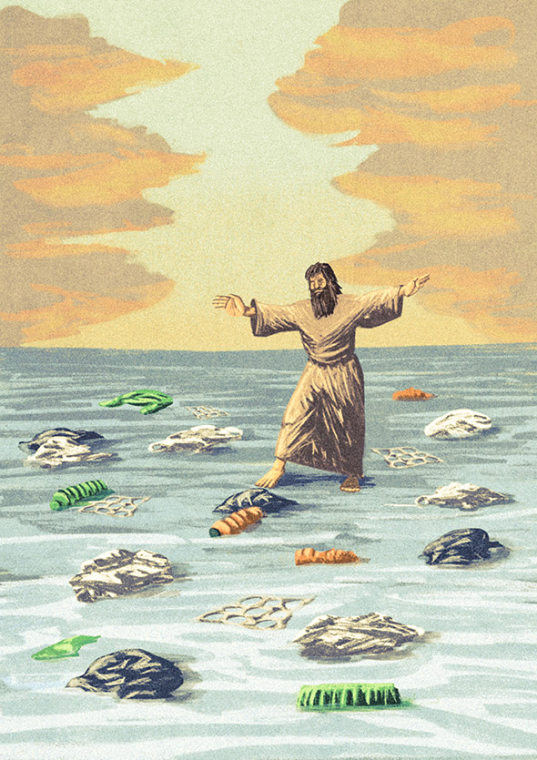 Nella visine dell’illustratore italiano Francesco Fontana se Cristo tornasse a camminare sulle acque incontrerebbe qualche difficoltà in più.