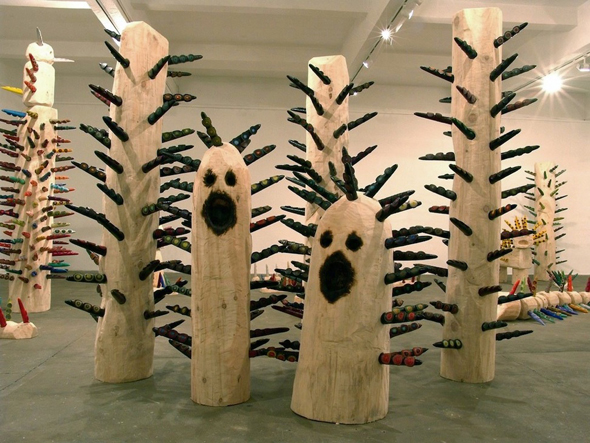 Olaf Breuning è un folle del 1970 nato a Schaffhausen. Trae ispirazione per le sue opere dai boschi della Svizzera, e definirle eccentriche è riduttivo. Crea in maniera compulsiva facendo interagire soggetti antropomorfi con le forme sinuose della natura, con un risultato spiazzante. Quadri, installazioni, performance: tutto è arte per Olaf, nulla viene lasciato al caso. Per lui vita e arte sono un connubio inscindibile, primario ed essenziale: se vivi, crei. Se non crei allora non vivi. Le sue opere vengono continuamente richieste in tutti i più importanti musei e centri d’arte del pianeta: dal Centre d’Art Contemporain di Parigi al MoMA PS1 di New York, dal Centre d’Art Contemporain di Ginevra alla Kodama Gallery di Kyoto. Impossibile non amarlo.