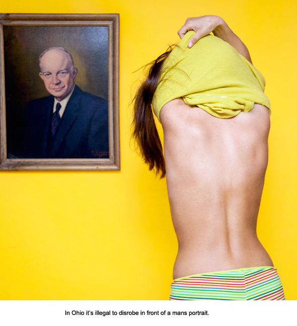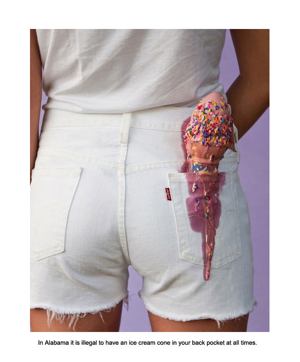 Lo sapevate che in Alabama è vietato andare in giro con un cono gelato infilato nella tasca posteriore dei pantaloni? O che in Nevada chi porta i baffi non può baciare una donna? Queste ed altre bizzarre leggi americane sono l’oggetto degli scatti della serie I Fought The Law di Olivia Locher, giovane fotografa con base a New York.