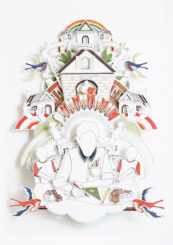La materia base dei lavori di Tawan Ithijarukul è la carta, che l’artista thailandese utilizza per comporre artwork ricchi di dettagli, nei quali mescola artigianato e disegno. Particolarmente interessante il progetto Lomocraft, una serie di infografiche che raccontano la storia della lomografia. Prendetevi 5 minuti e spulciatevi il suo profilo Behance di Tawan in lungo ed in largo.