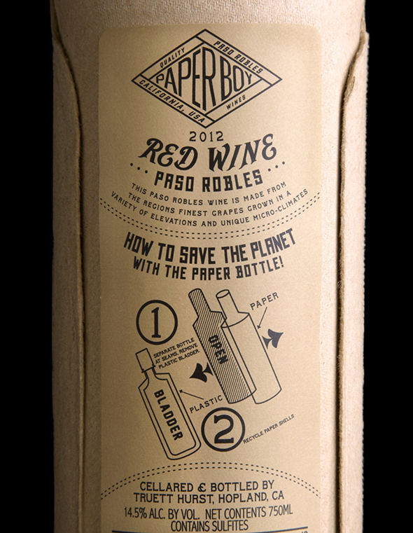 Voi appassionati di vino che già state storcendo il naso, vi vedo! Prima di giungere a conclusioni affrettate sappiate che questa bottiglia è fatta con carta riciclata, è leggera, resistente agli urti, può essere messa nel ghiaccio per 3 ore e contiene una sacca -esattamente come il bag in box– che preserva il gusto e la qualità del vino. Produrla costa l’85% in meno rispetto alle classiche bocce di vetro. Meditate.