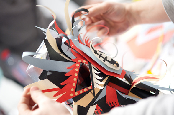 Graphical Carnaval è un progetto 100% handmade di INK studio con la partecipazione di numerosi creativi, che armati di cartoncino, colla e forbici hanno progettato e creato sei coloratissime maschere di Carnevale. Ispirate ai dragoni della mitologia orientale, queste sculture di carta sono curate nei minimi dettagli, che possiamo apprezzare grazie agli scatti realizzati durante il work in progress.