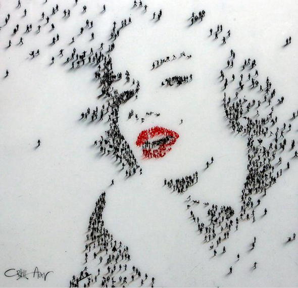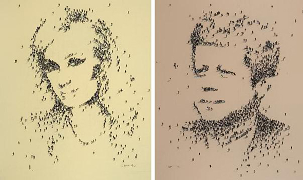 Una serie di portraits classici: Marilyn Monroe, JFK, Audrey Hepburn nella famosa scena di “Colazione da Tiffany”, ma realizzati con uno strabiliante inedito mezzo: radunare le persone fino a comporne le effigi. Un progetto davvero sorprendente, dell’artista californiano Craig Alan.