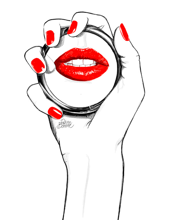Quello di Petit Boheme è un mondo fatto di poche linee nere, intrise di femminilità e desiderio, e un tocco di smalto rosso. Un dettaglio che ricorda l’arte erotica di Frida Castelli, con cui l’illustratrice francese ha in comune più di un tratto, in primis la centralità della donna, nel suo sentirsi libera di vivere la propria sessualità lontano da ogni pregiudizio.