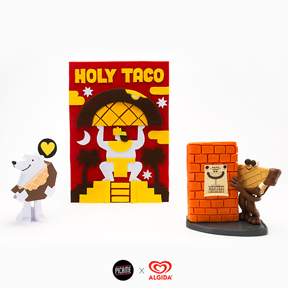 A loro il compito di reinterpretare Winner Taco utilizzando rispettivamente feltro, carta e plastilina, con la massima libertà espressiva e con la consapevolezza di avere un’importante responsabilità, quella di celebrare l’icona di una generazione.