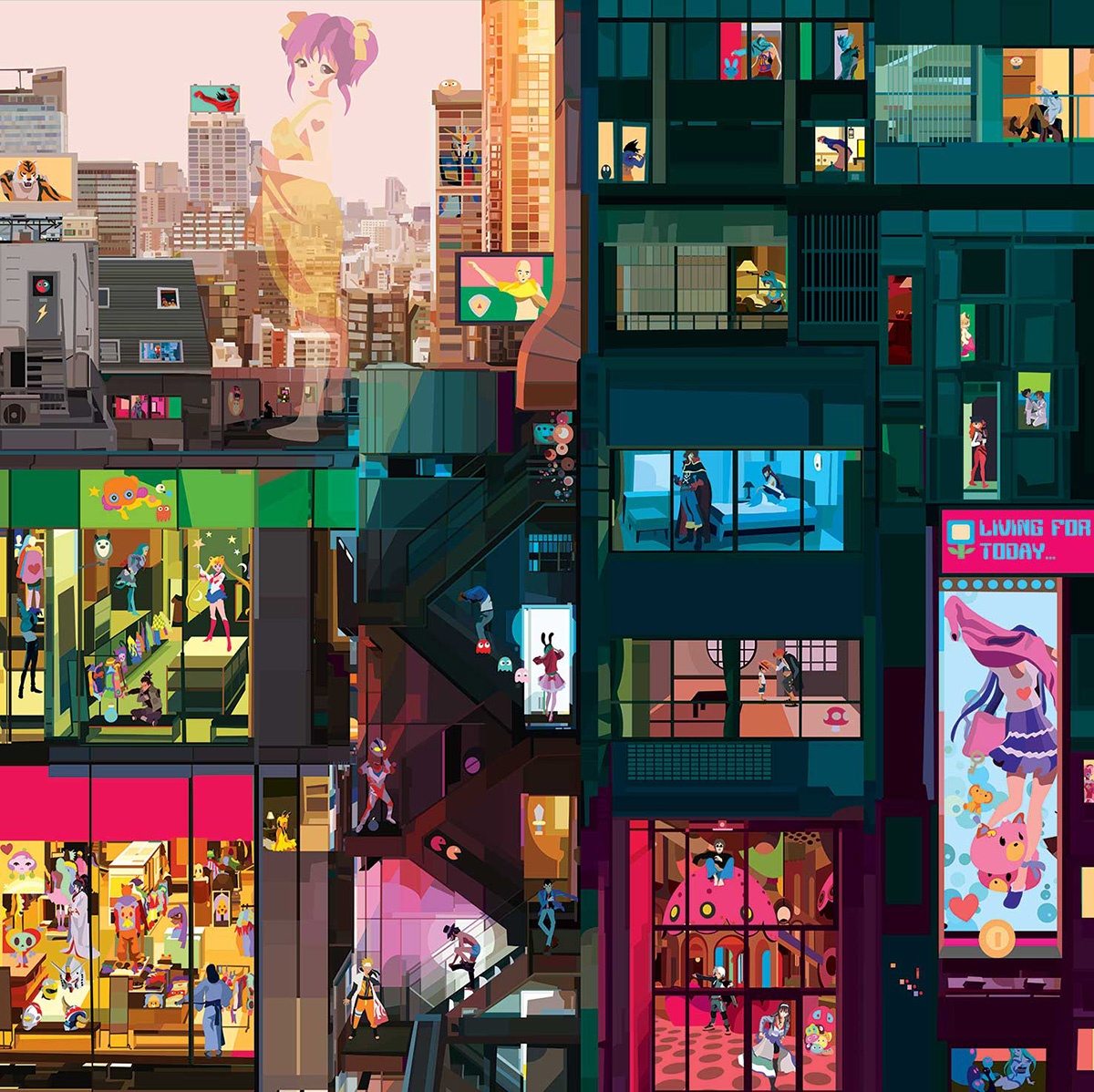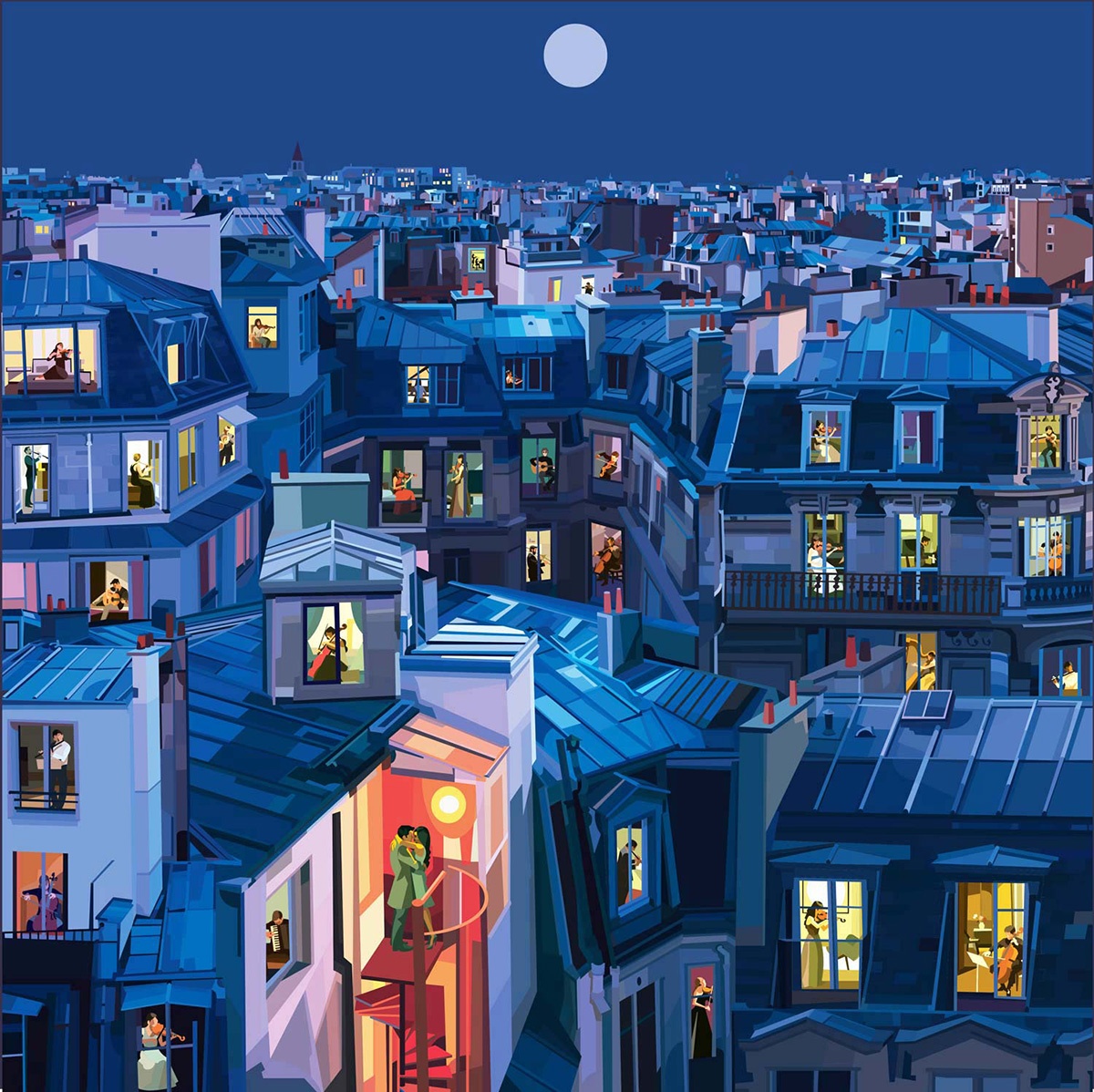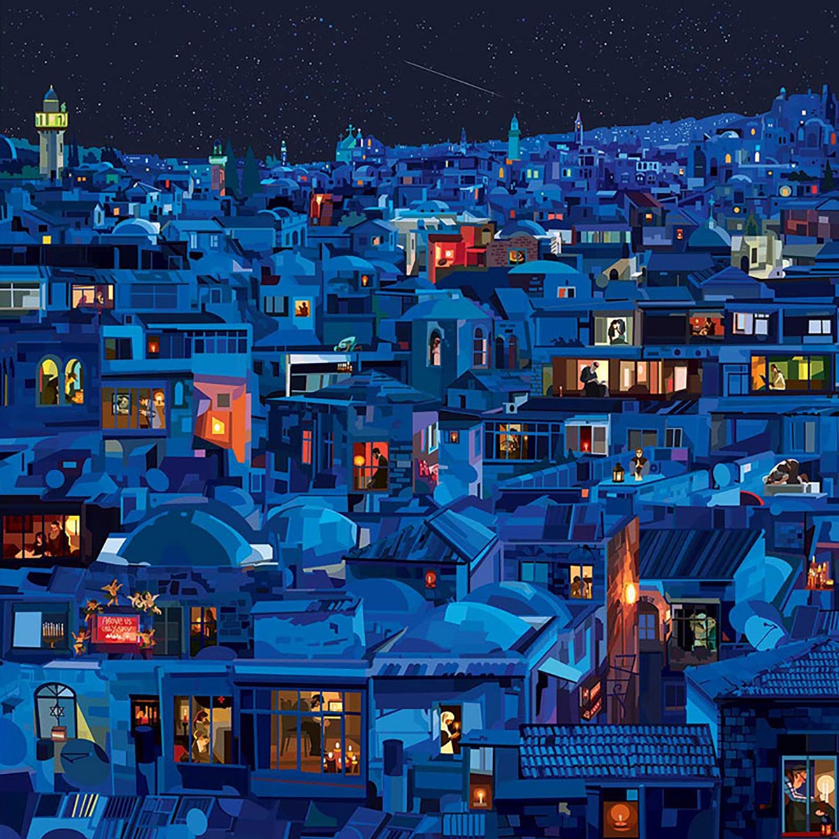 Un passato come disegnatore alla Disney e character designer alla Ferrero, il lavoro come insegnante e illustratore, poi l’arrivo dei figli, una gioia che ti riempie l’esistenza ma ti limita negli spostamenti. In chi come Pierpaolo Rovero ha fatto del viaggio la propria fonte di vitalità ed ispirazione si fa strada l’esigenza di continuare a scoprire il mondo, in un modo o nell’altro. Nasce il progetto “Imagine All The People”, una serie di 24 illustrazioni ambientate in altrettante città, nelle quali attraverso le finestre aperte possiamo entrare nelle case ed osservare cosa accade.