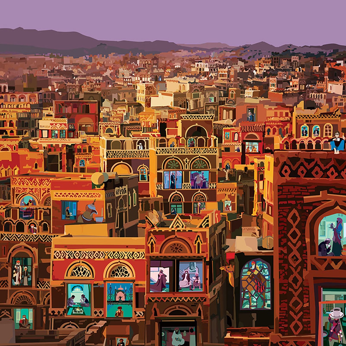 I quadri di sono realizzati partendo spesso dalle richieste della gente, attraverso i social. Mi è capitato di ricevere immagini di documentazione o messaggi che mi spiegano dettagli riguardo alle singole città. Anche con Sana’a, sono stato raggiunto da un gentilissimo Yemenita che mi ha fornito spunti e foto. La partecipazione della gente al progetto mi aiuta ad entrare nell’atmosfera, a stabilire un contatto reale con ciò che sto immaginando.