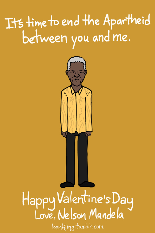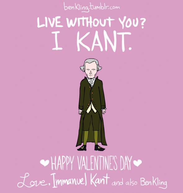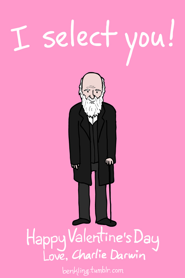 Ben Kling ha fatto dell’amore un piccolo business, con le sue cartoline di San Valentino che riportano massime (fantasiose) di personaggi celebri. Se volete dichiararvi alla vostra amata come avrebbero fatto Darwin, Napoleone o Socrate non dovete far altro che visitare lo shop online di Ben e scegliere la vostra postcard.