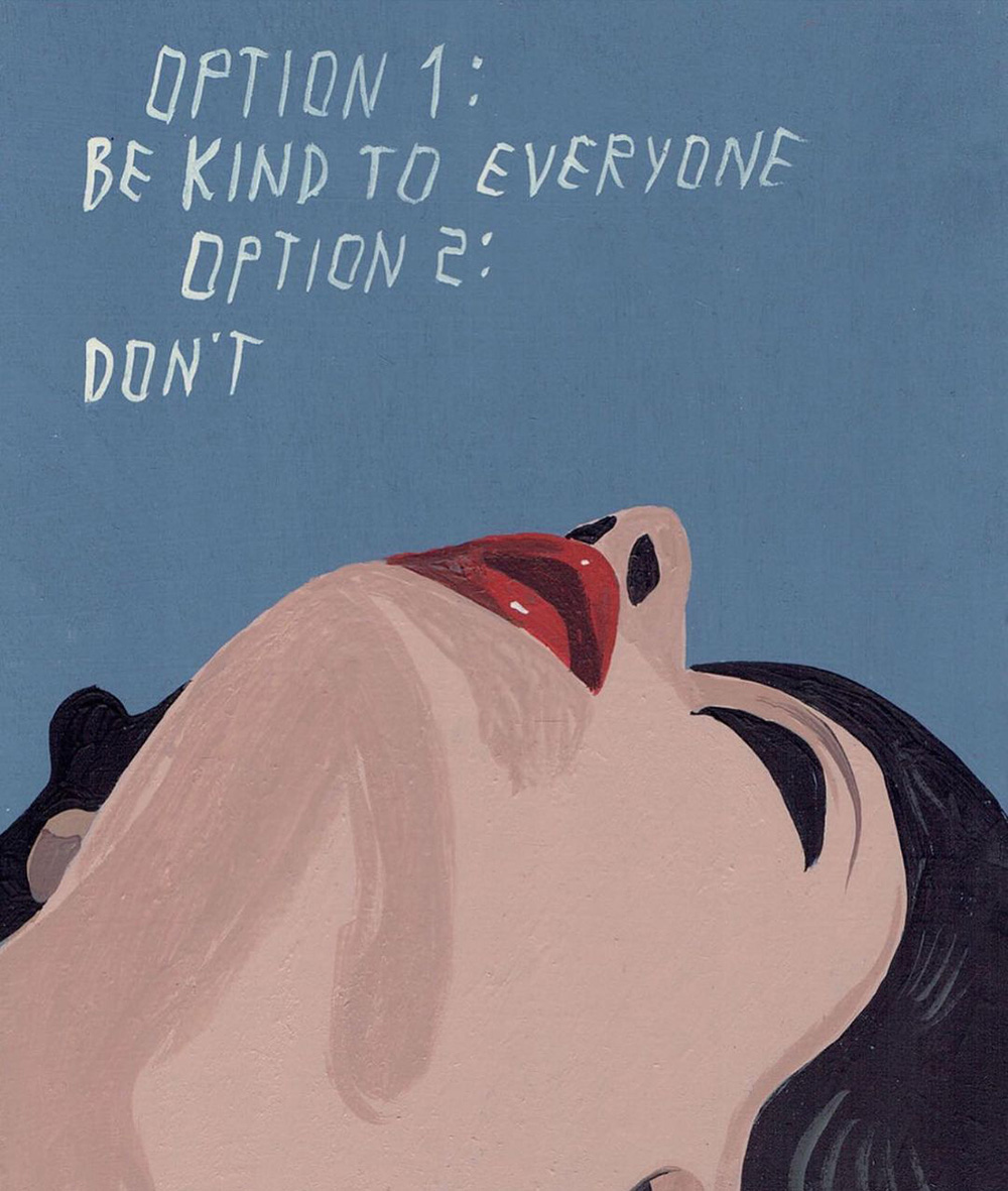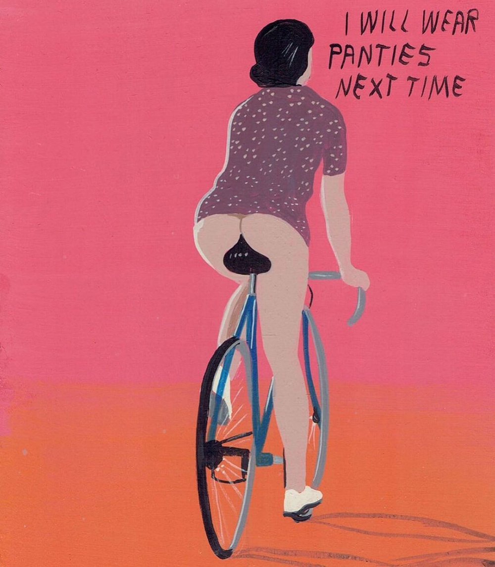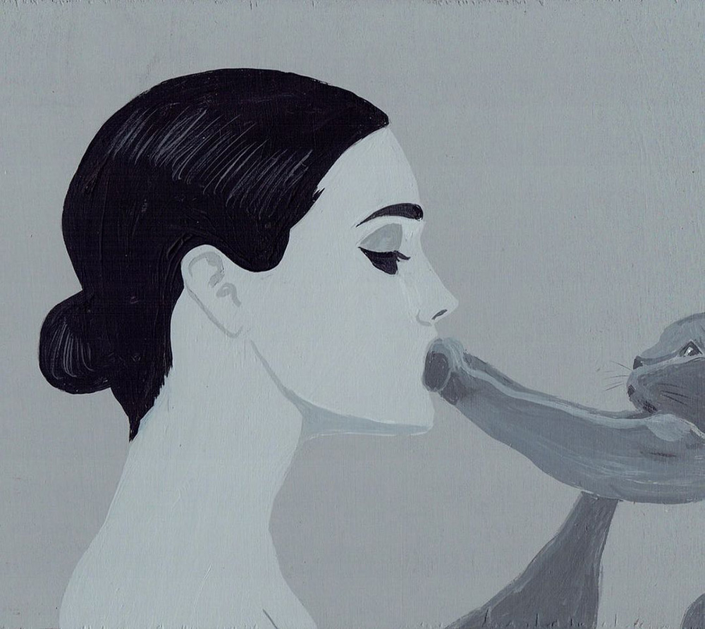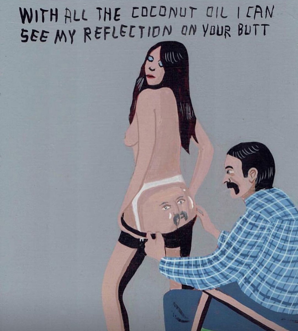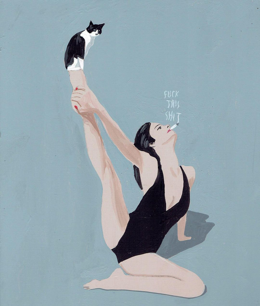 I dipinti poi sono un agile compendio di fumetto e pop art, solo aggiornato in chiave, appunto, pulp. I temi e i protagonisti sono sempre certi stereotipi middle-class dell’iconografia americana, dal cinema alla pubblicità, solo più discinti e trattati in chiave ferocemente umoristica, con uno stile che a prima vista sembra digitale ma in realtà è frutto di sane pennellate e di un sublime gusto per le atmosfere noir. E non è nemmeno difficile vedere nella sempiterna critica ai valori borghesi emergere qualcuno degli ideali hipster. Lunga vita, Pulp Brother.