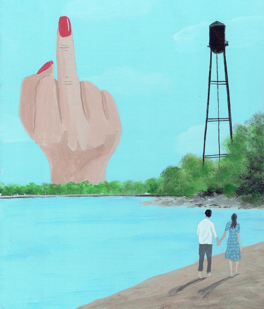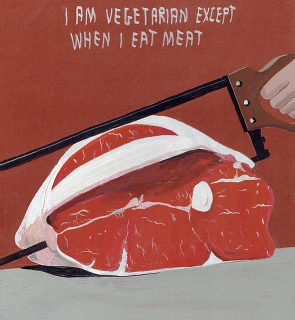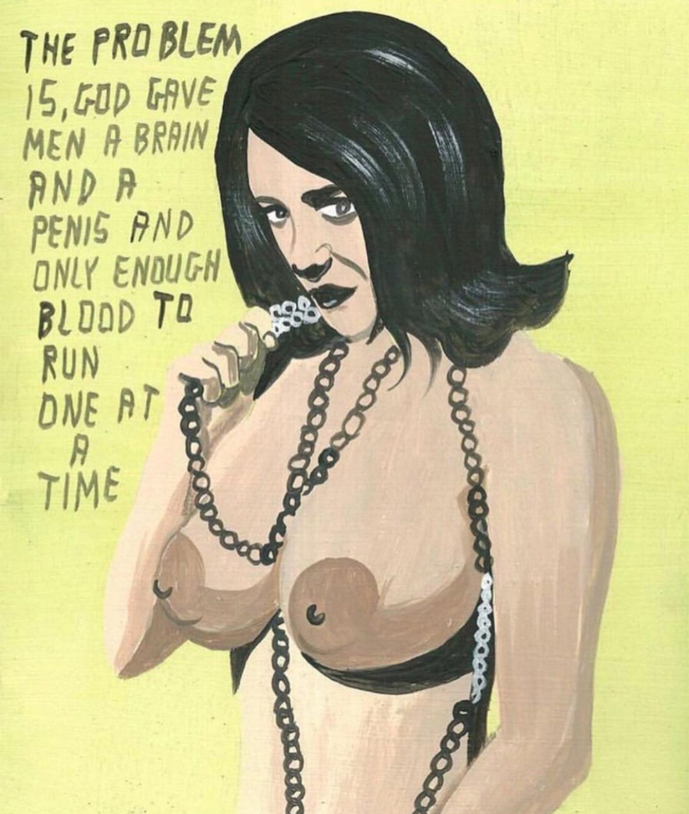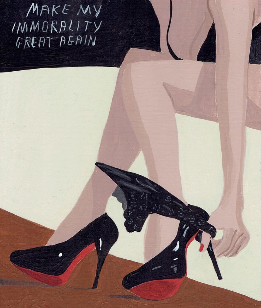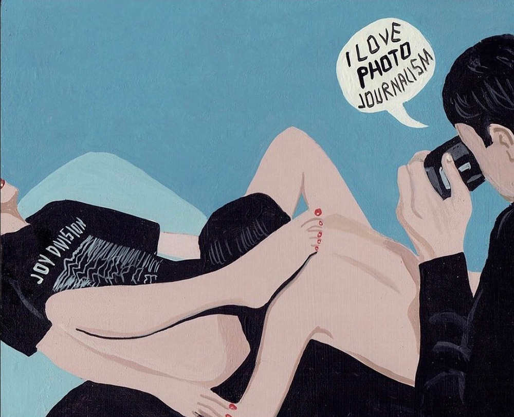 I dipinti poi sono un agile compendio di fumetto e pop art, solo aggiornato in chiave, appunto, pulp. I temi e i protagonisti sono sempre certi stereotipi middle-class dell’iconografia americana, dal cinema alla pubblicità, solo più discinti e trattati in chiave ferocemente umoristica, con uno stile che a prima vista sembra digitale ma in realtà è frutto di sane pennellate e di un sublime gusto per le atmosfere noir. E non è nemmeno difficile vedere nella sempiterna critica ai valori borghesi emergere qualcuno degli ideali hipster. Lunga vita, Pulp Brother.