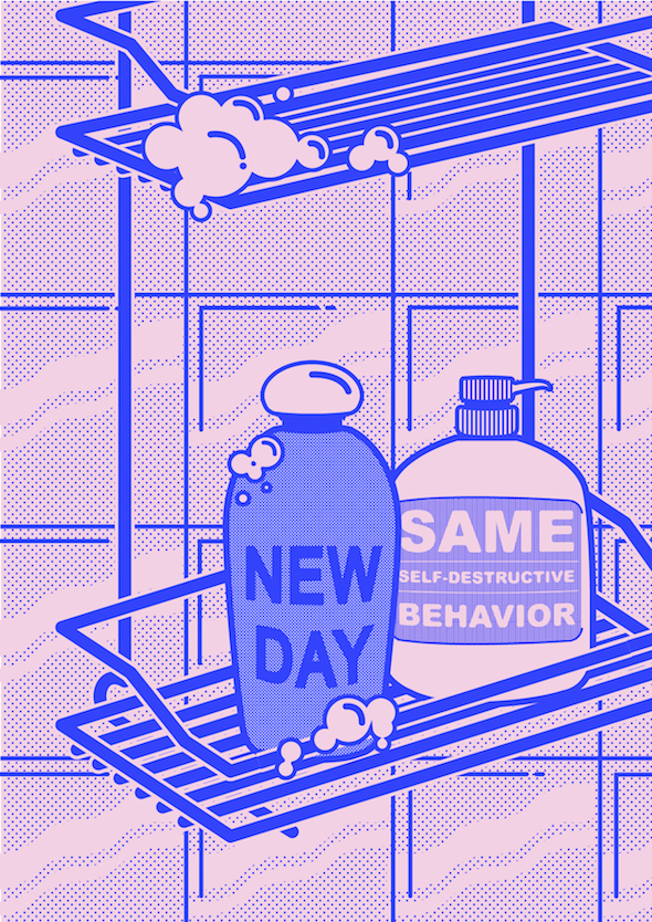 “Everyday Thoughts On Everyday Things” è la riflessione visiva della brasiliana Rachel Denti sulla propria vita quotidiana. Prendendo in prestito lo stile del fumetto, la designer illustra i riti obbligati e le ossessioni comuni (lo shopping, le sigarette, ecc.) giustapponendovi sensazioni e pensieri personali. L’identificazione è quasi immediata anche grazie alla incisiva semplicità delle immagini, come nella migliore tradizione comics.