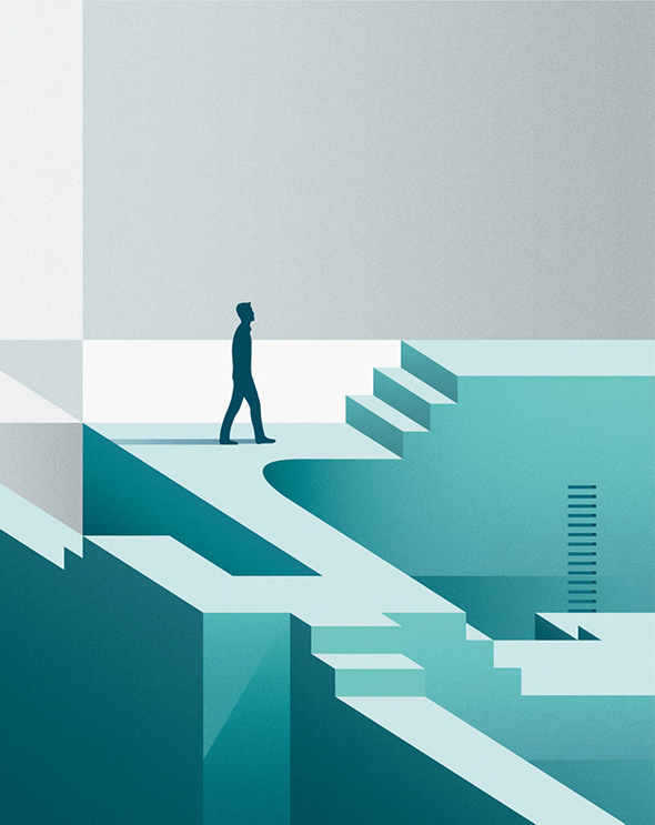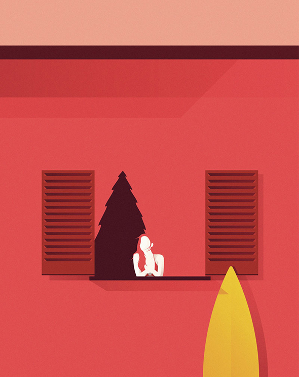 Questo affermava l’immenso Munari, in uno scritto di molti decenni fa, esaltando la capacità di sottrarre piuttosto che di aggiungere. In ciò, lo abbiamo visto, è maestra contemporanea Malika Favre, che nella nostra intervista chiarisce come il processo si sintesi sia la base di partenza di ognuno dei suoi lavori. Anche in Ray ho ritrovato questa rara capacità di eliminare dalla scena ogni elemento superfluo alla narrazione, concedendo ampi spazi vuoti riempiti di tinte piatte e lasciando alla luce – e all’ombra – il compito di delineare con delicatezza le forme.
