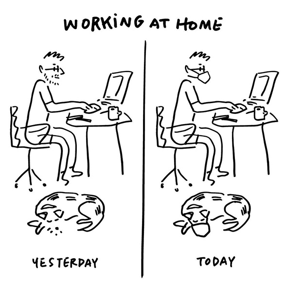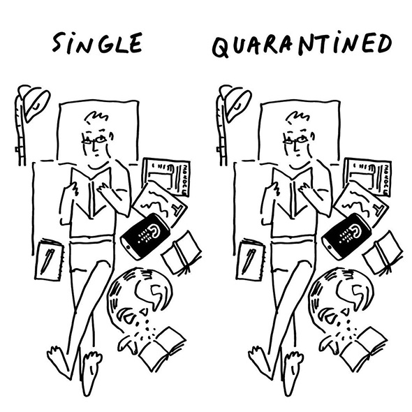 Rob Wilson, pluripremiato illustratore e graphic designer di NYC, ci viene in soccorso con una serie di vignette ironiche che, oltre a farci divertire, ci ricordano che siamo tutti nella stessa situazione, soffriamo delle medesime frustrazioni e incertezze, ci arrovelliamo il cervello per combattere la noia e la preoccupazione e, all’occorrenza, siamo tutti in grado di trovare la forza per sorridere e andare avanti.