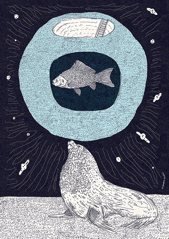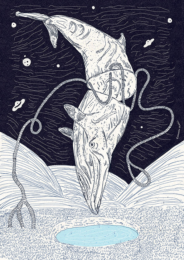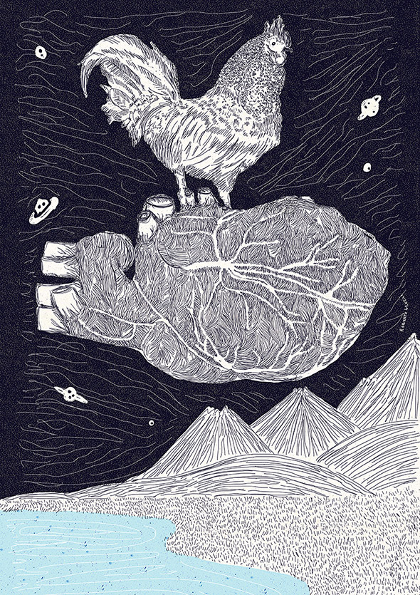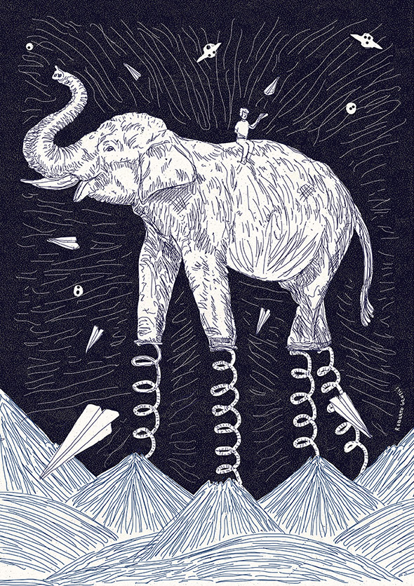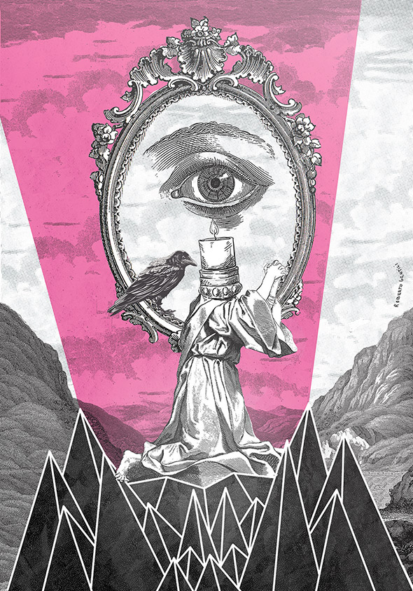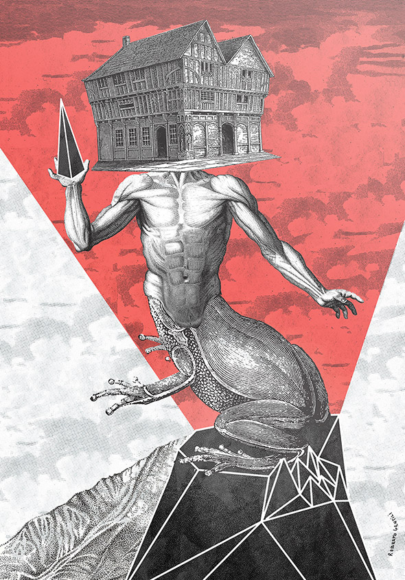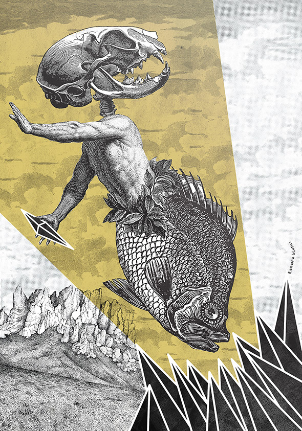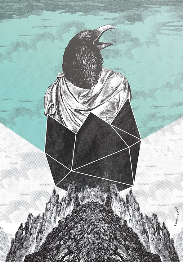 Il suo lavoro spazia dalla grafica vettoriale all’illustrazione manuale, passando per il collage, una tecnica particolarmente adatta per raggiungere quel grado di astrattismo e concettualità che è la cifra stilistica che lo contraddistingue.
