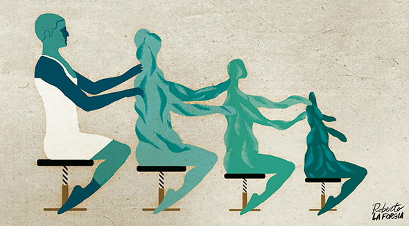 Nato a Treviso e successivamente stabilitosi a Milano, dove attualmente vive e lavora, Roberto La Forgia è un illustratore estrememente prolifico, che spazia dai libri per l’infanzia ai fumetti passando per l’illustrazione editoriale per magazine e pubblicazioni varie (tra cui Il fatto Quotidiano, con cui collabora in maniera continuativa). Il suo stile è in perenne evoluzione e negli ultimi tempi presenta in taglio decisamente più geometrico rispetto al passato. Una caratteristica che emerge in modo particolare dal nuovo header che Roberto ha realizzato appositamente per PICAME.