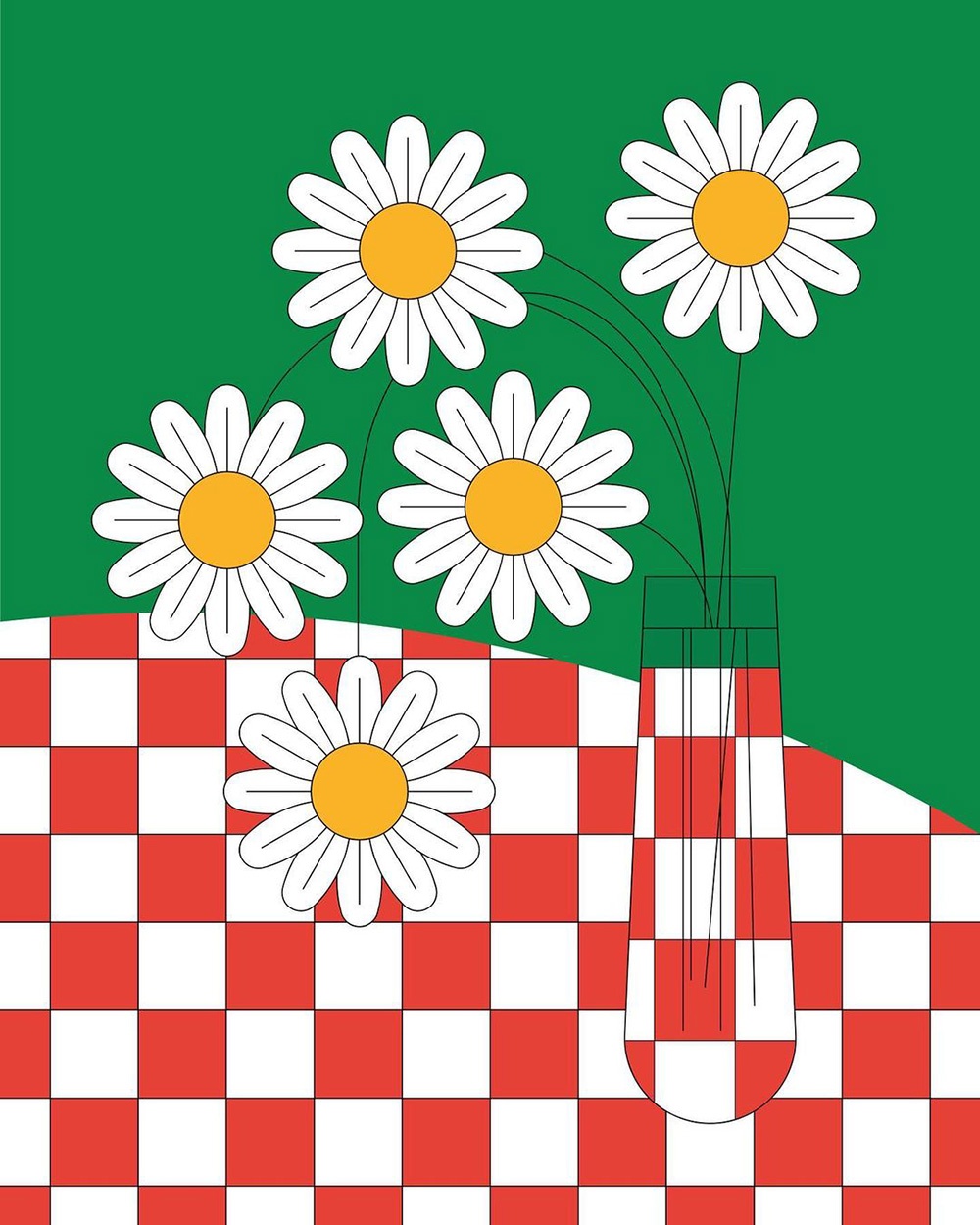 Le sue illustrazioni sono riconoscibili per le composizioni geometriche fatte di linee sottili e colori vibranti. Cibo e i fiori, due tra le più grandi passioni dell’artista spagnola, sono tra i soggetti maggiormente ricorrenti. Negli still life fatti di vasi di varie forme e dimensioni, Rocìo gioca con le trasparenze e con la luce creando un effetto di sovrapposizione quasi psichedelico che altera il rigore della composizione. Nella biografia si legge: