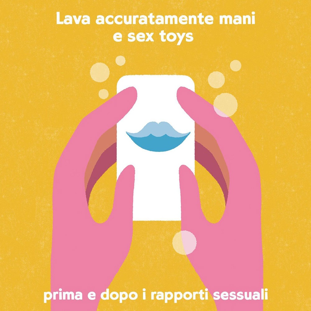 3 – “Lavare accuratamente le mani ed i sex toys prima e dopo i rapporti sessuali, mai come questa volta è obbligatorio! Infatti queste norme, che valgono sempre, in questo periodo devono essere un “must” – niente distrazioni!”