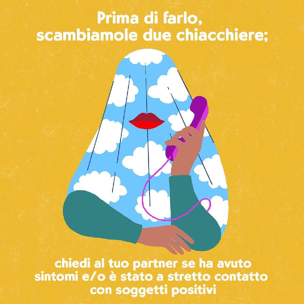 9 – “Prima di finire in camera da letto, facciamole due chiacchiere. Informati sempre in merito a sintomi suggestivi per contagio da Covid e/o chiedi se il/la/i partner abbiano avuto contatti con soggetti contagiati.”