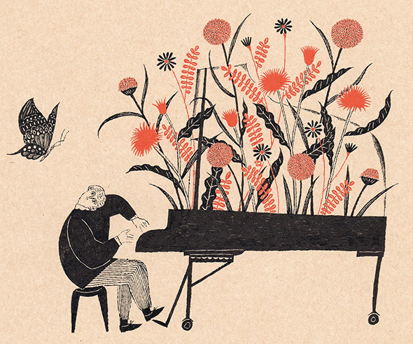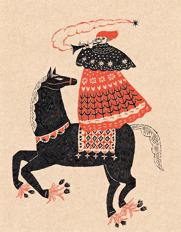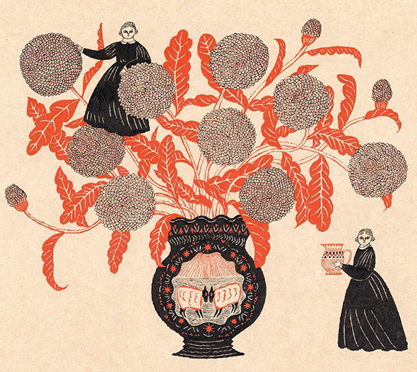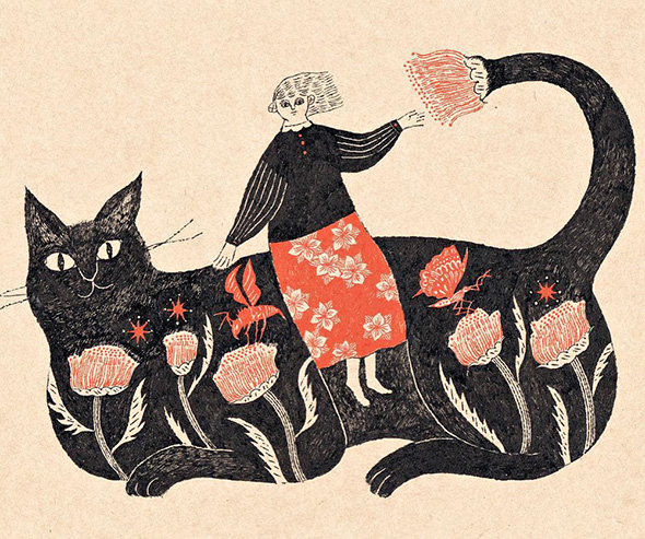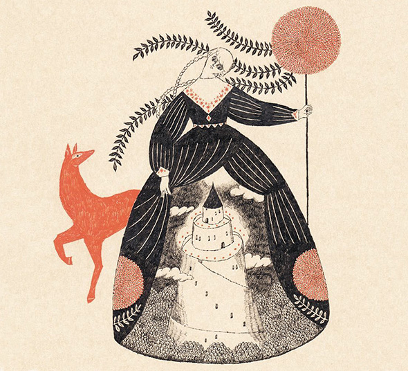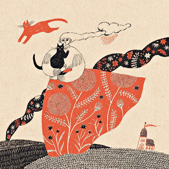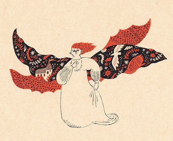Sono le caratteristiche immediatamente riconoscibili delle fiabe naif dell’illustratrice giapponese Sanae Sugimoto. L’artista utilizza una di carta dalla tonalità beige ed esclusivamente inchiostro nero e rosso vermiglione, lo “shueki”, tradizionalmente usato dai maestri per correggere gli errori degli scolari. Racconti fantastici che trasmettono serenità e leggerezza e assomigliano ai dipinti visionari e popolati da figure volanti di Chagall. È la stessa Sanae a confessare di aver nutrito la sua fantasia con la letteratura occidentale fin da quando era adolescente.