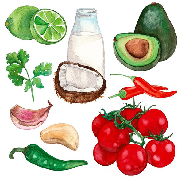 Il suo talento, tanto semplice quanto genuino, è quello di saper riprodurre fedelmente con matite e colori gli alimenti più prelibati, in particolare bella frutta matura e vegetali freschi di raccolta, facendoci letteralmente venire l’acquolina in bocca. Con una grande padronanza del tratto e splendidi colori ad acquerello dosati con delicatezza, le sue illustrazioni non risultano soltanto appetitose ma trasmettono un senso di vitalità ed allegria che è una vera goduria per gli occhi e per la mente.