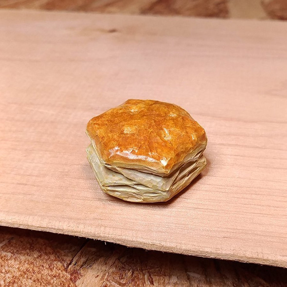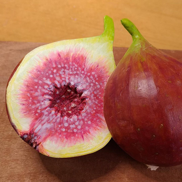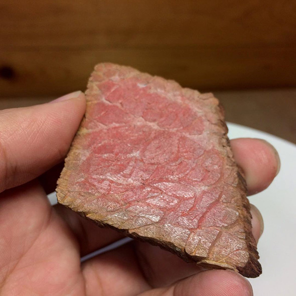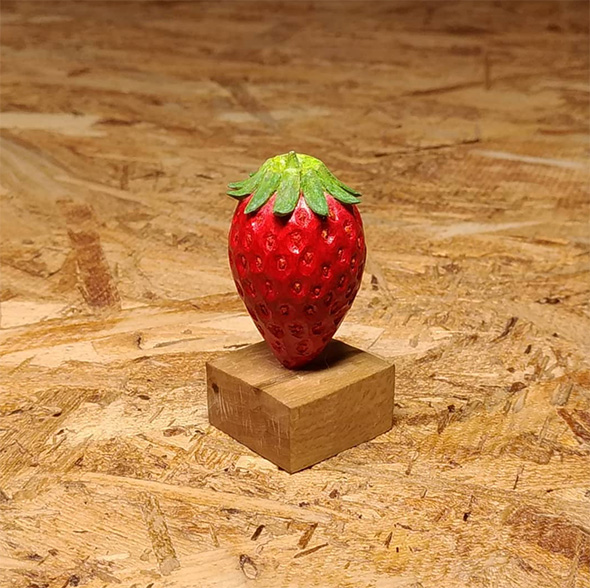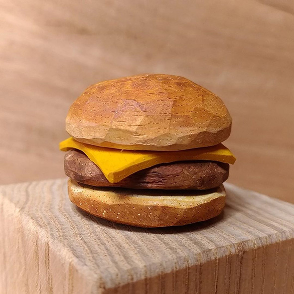 Il suo talento emerge in maniera particolare nelle sculture che riproducono i cibi più comuni, dall’hamburger alla carne di Wagyu, passando per frutta, verdura e prodotti da forno. Una volta scolpito il legno Kawasaki finalizza il lavoro applicando colori e smalti che rendono queste opere così simili agli originali che viene quasi la tentazione di addentarle.