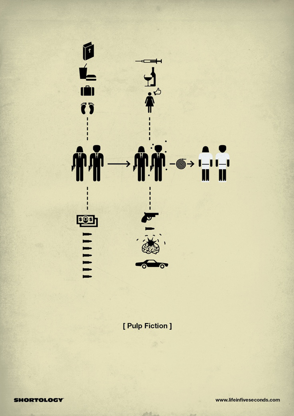 Life is crazy. A lot of things to do in a limited time. 24 hours are too short for working, studying, and satisfying our little daily pleasures. Moreover there are some incurable movie watchers, which therefore need another couple of extra hours before bed time… For those who don’t want to deprive themselves of a daily cinema ration, Shortology from H-57 is the answer, a book which minimalizes many stories, including famous movies.