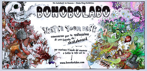 Avete tempo fino al 30 maggio per presentare la vostra versione di una tavola da skateboard che Bonobolabo produrrà in edizione limitata di 30 pezzi. Il contest è ovviamente gratuito e rivolto a tutti i creativi del web, siano essi illustratori, grafici, writer, artisti o semplici appassionati.